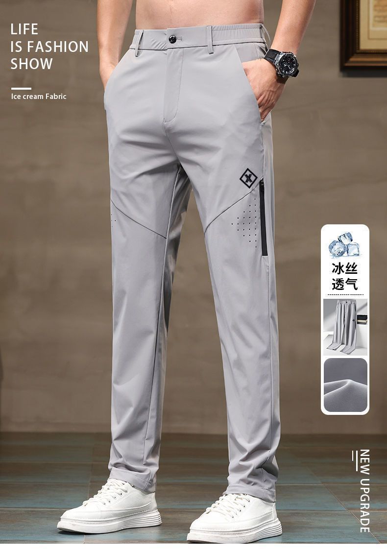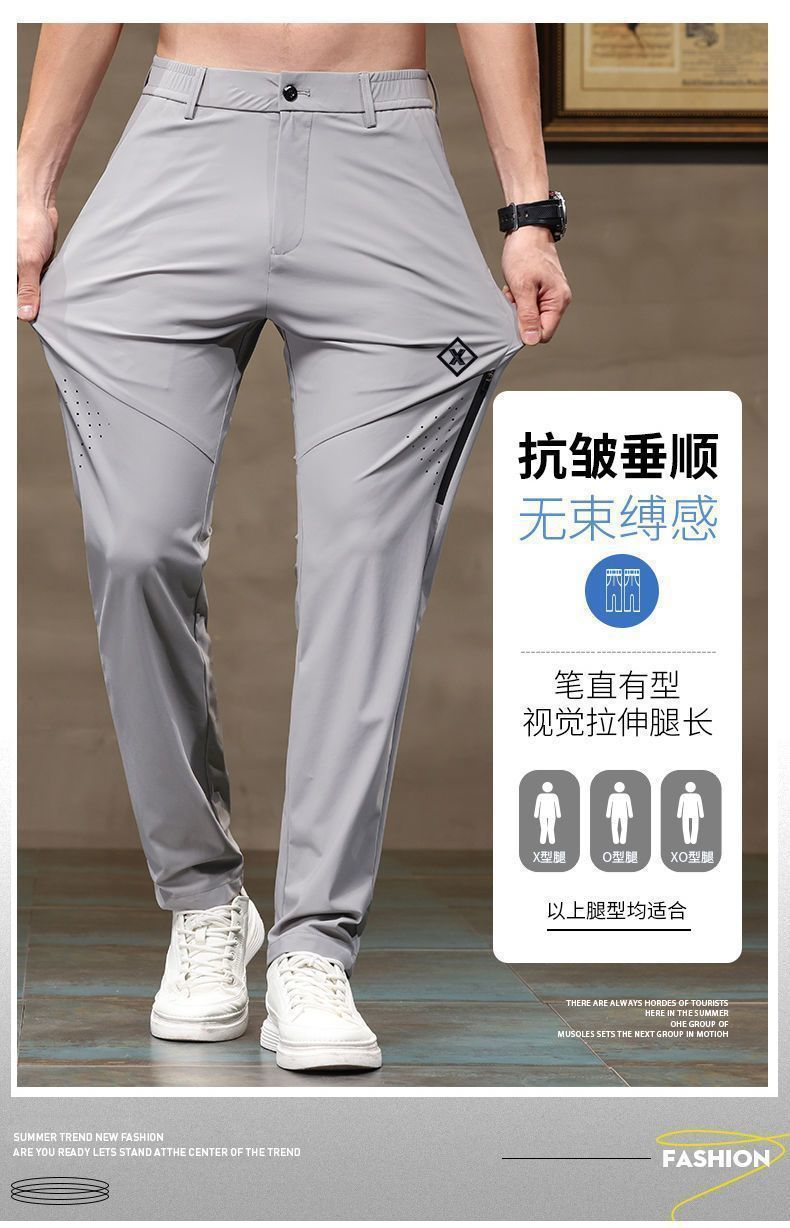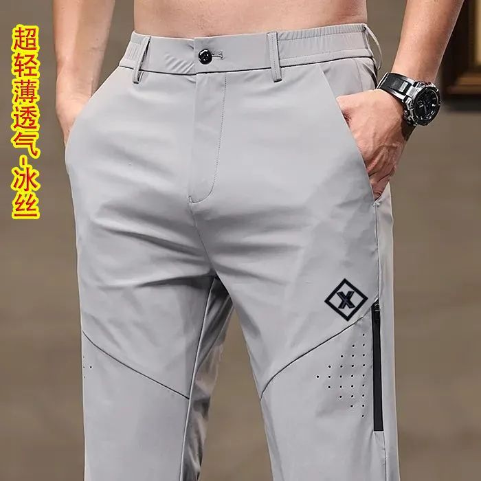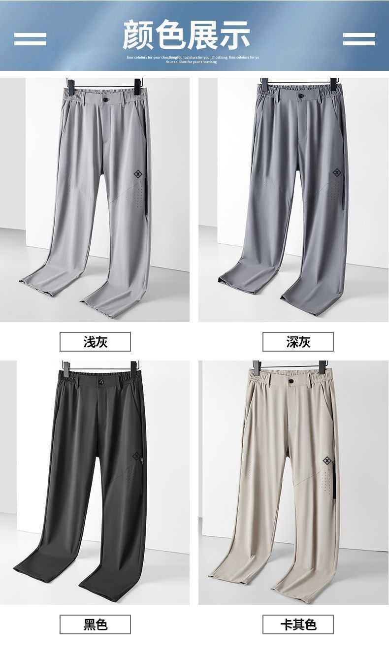 여름 얇은 바지 남성용 아이스 실크 캐주얼 바지 루즈 스트레이트 트렌디 다용도 야외 착용 통기성 속건 바지스토어 가기