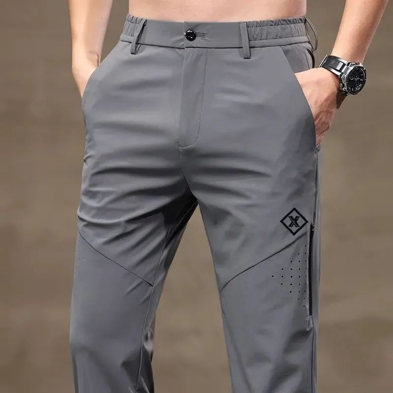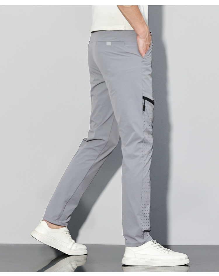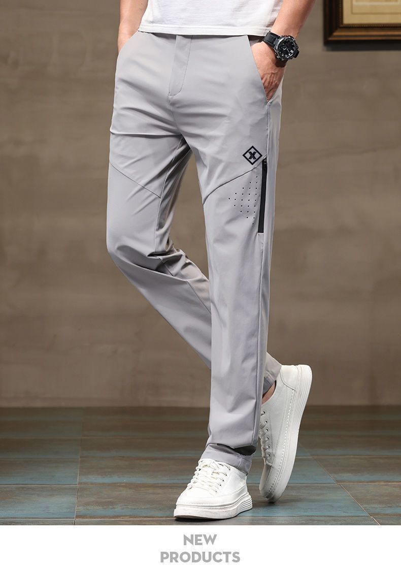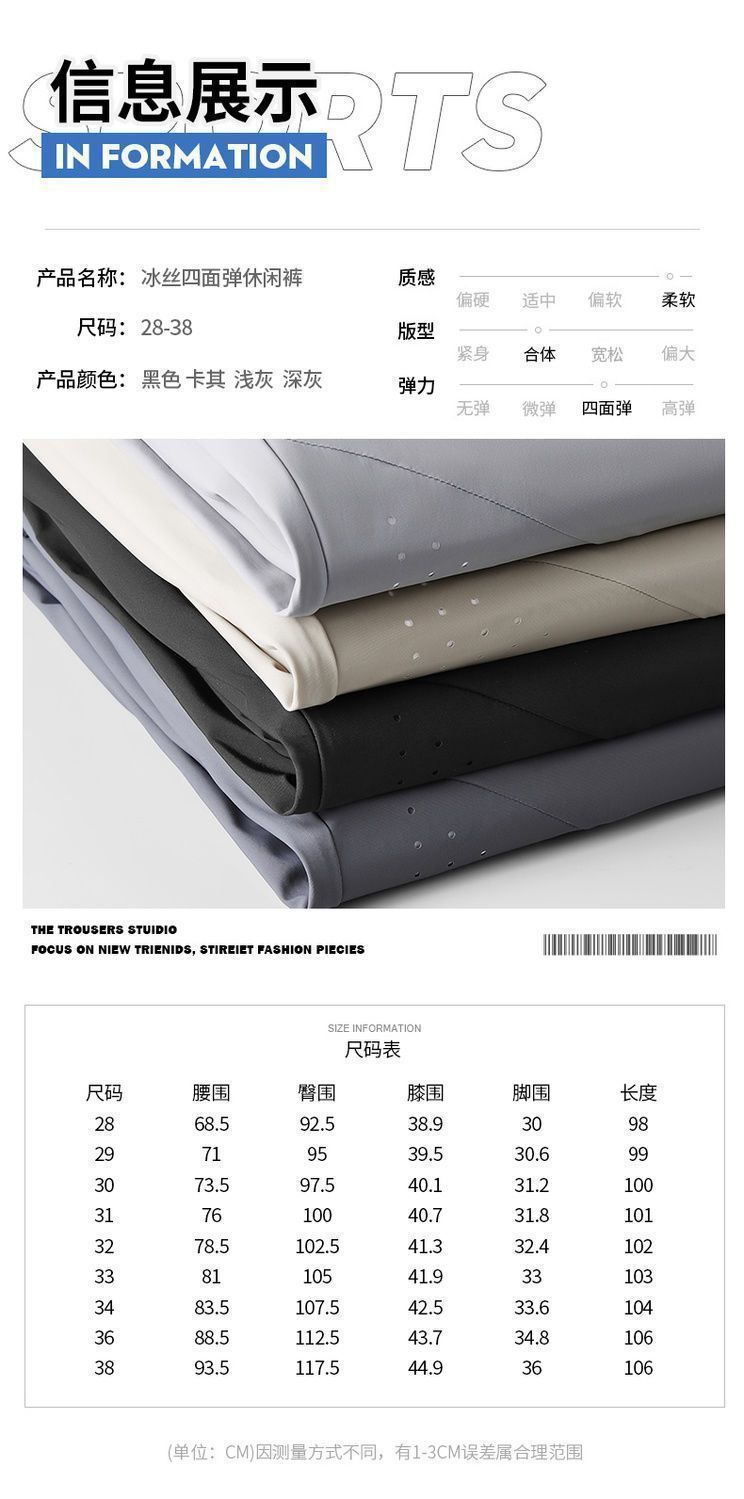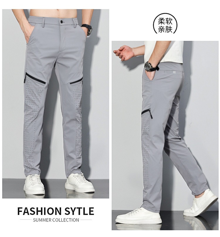 여름 얇은 바지 남성용 아이스 실크 캐주얼 바지 루즈 스트레이트 트렌디 다용도 야외 착용 통기성 속건 바지스토어 가기