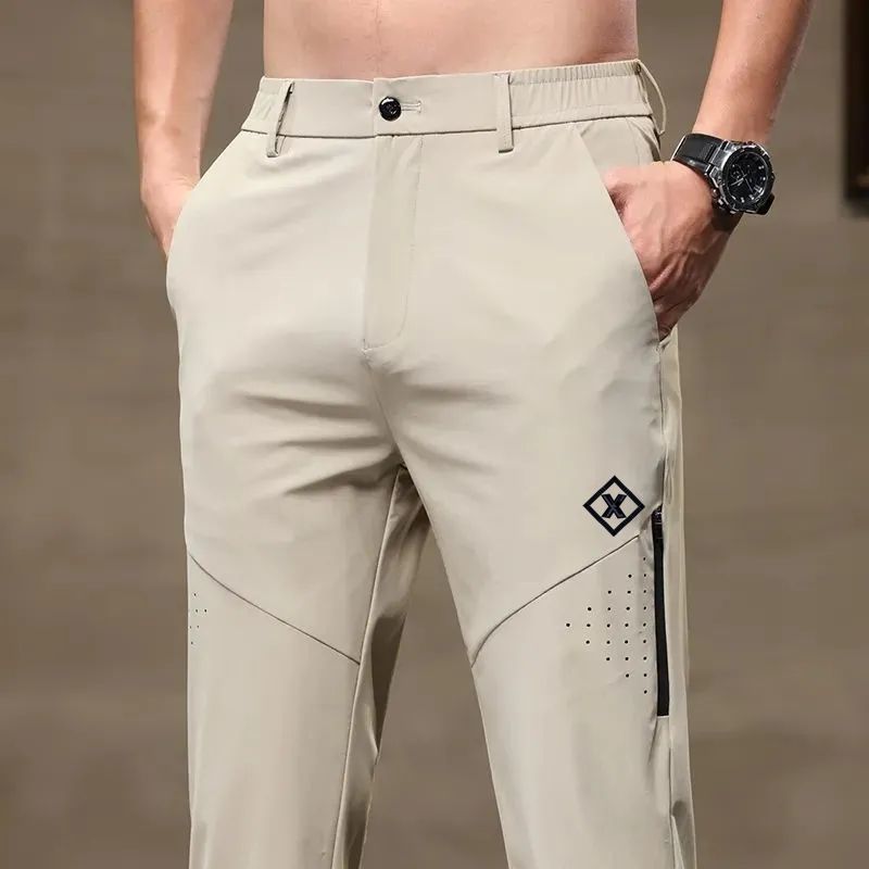 여름 얇은 바지 남성용 아이스 실크 캐주얼 바지 루즈 스트레이트 트렌디 다용도 야외 착용 통기성 속건 바지