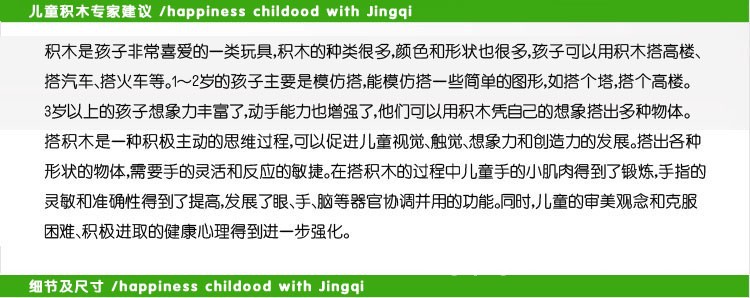 积木是经典的玩具,因为它对于宝宝各方面的能力培养是无法用其他玩具取代的。