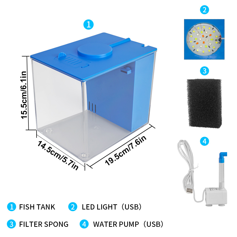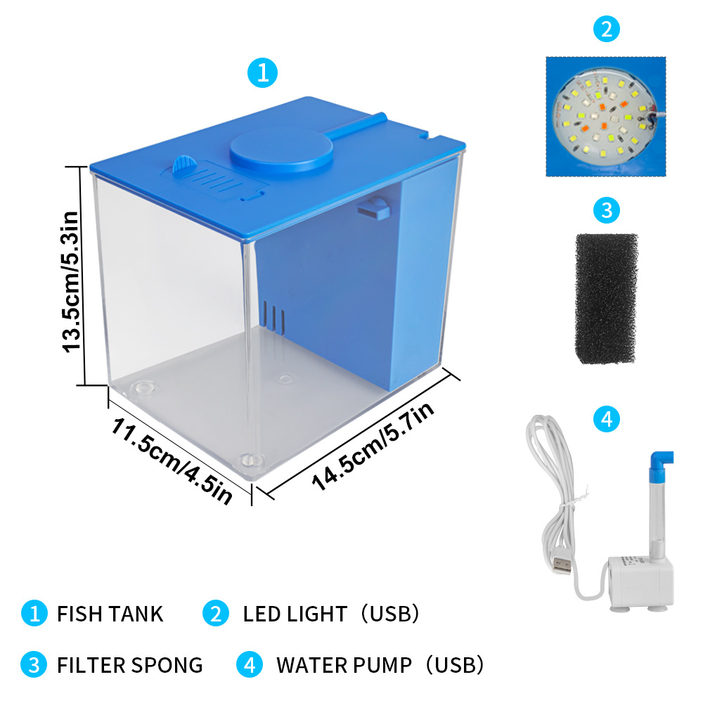 产品特点:内置优质USB水泵,优质USB水族灯以及过滤棉。过滤棉加厚加密,过滤效果佳,可清洗重复使用;