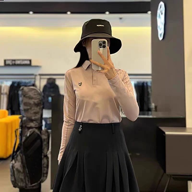 한국 AMAZINGCRE 골프웨어 여성용 봄 라펠 스트레치 따뜻한 마이크로 벨벳 긴팔 티셔츠스토어 가기