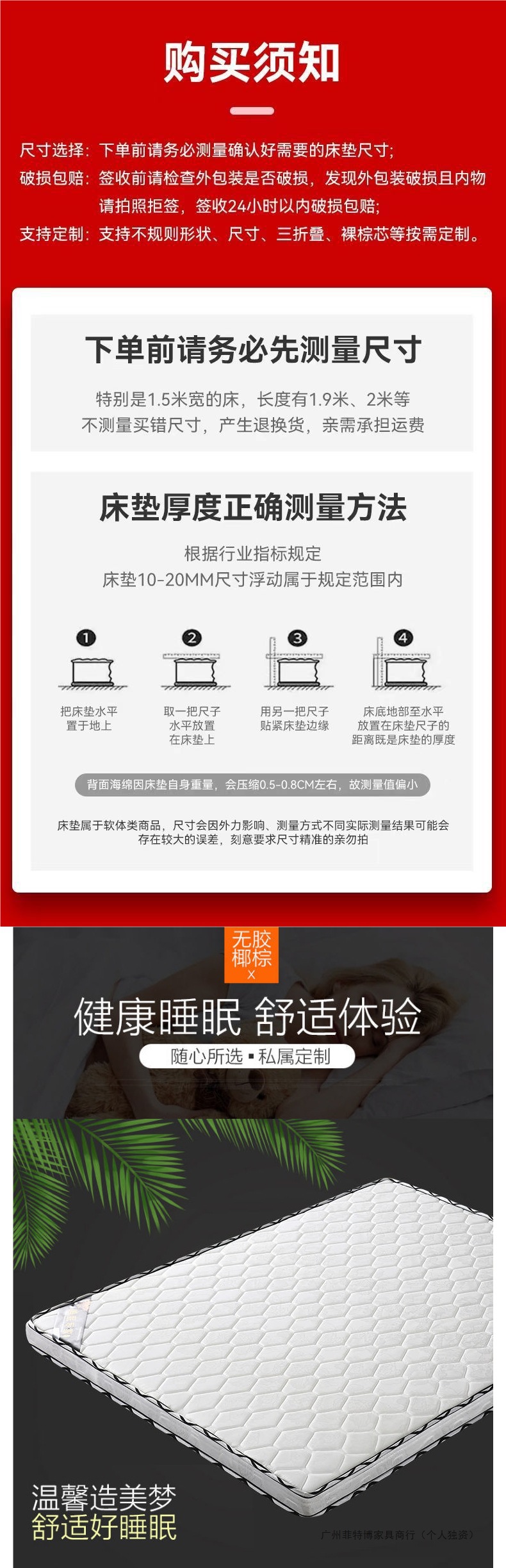 갈색 매트 친환경 코코넛 야자 매트리스 더블 1.5m 두꺼운 1.8 소프트 하드 팜 시몬스 얇은 어린이 접이식스토어 가기