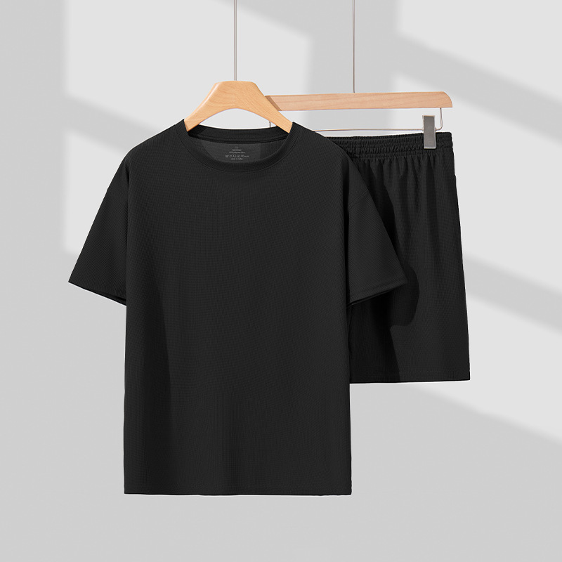 와플 커플 잠옷 여름 얇은 홈 여성 반팔 반바지 캐주얼 루즈 남성용 홈 의류 세트