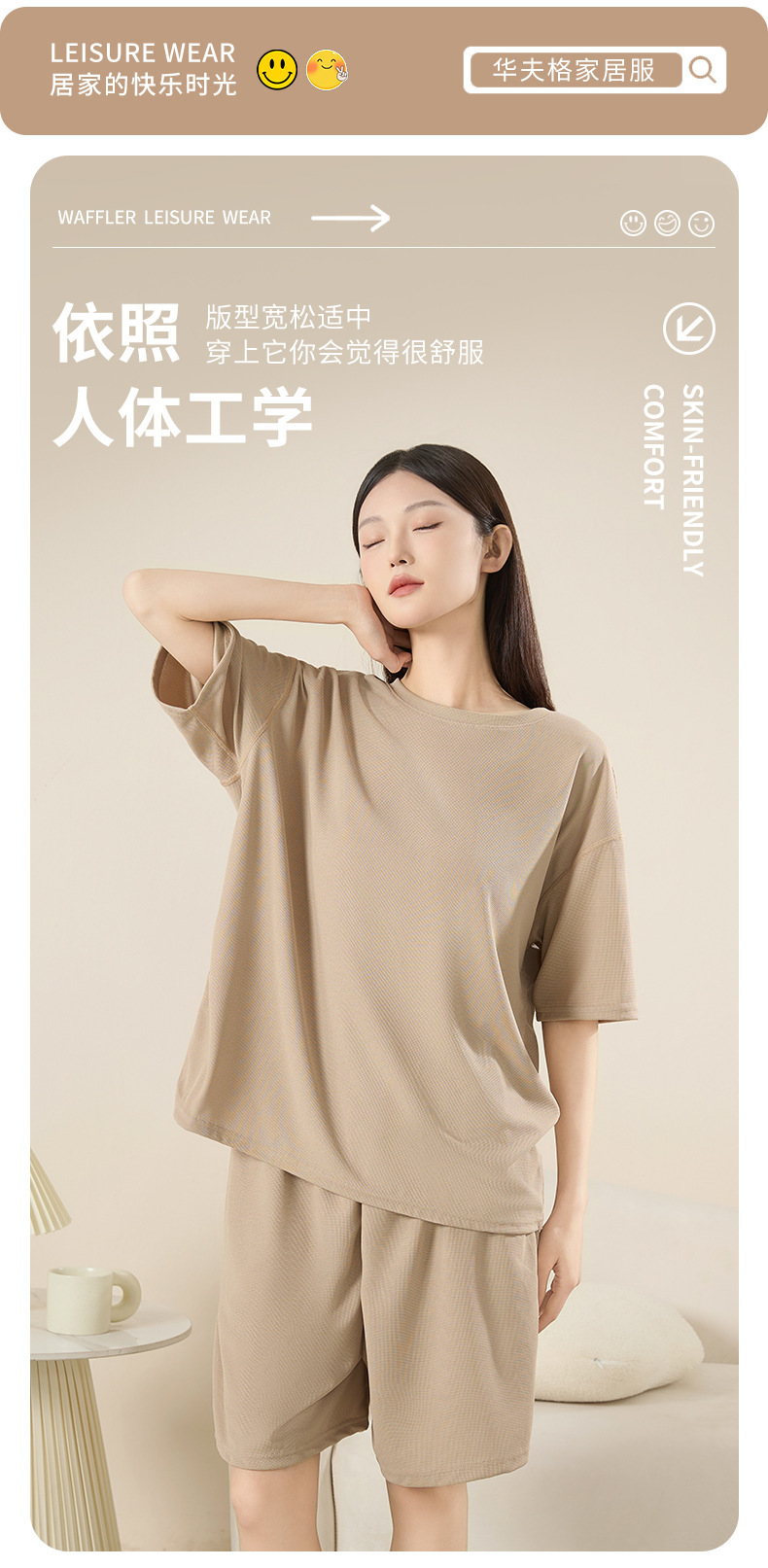 와플 커플 잠옷 여름 얇은 홈 여성 반팔 반바지 캐주얼 루즈 남성용 홈 의류 세트스토어 가기