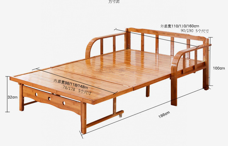 대나무 소파 베드 이중 목적 접이식 더블 점심 휴식 홈 거실 작은 사무실 싱글 레저 슬리핑 의자 침대