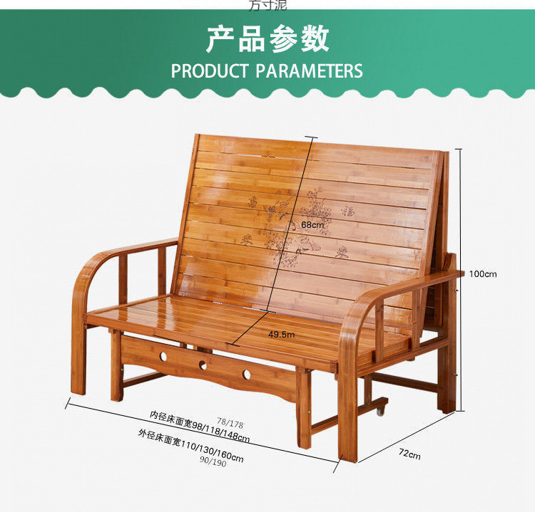 대나무 소파 베드 이중 목적 접이식 더블 점심 휴식 홈 거실 작은 사무실 싱글 레저 슬리핑 의자 침대스토어 가기