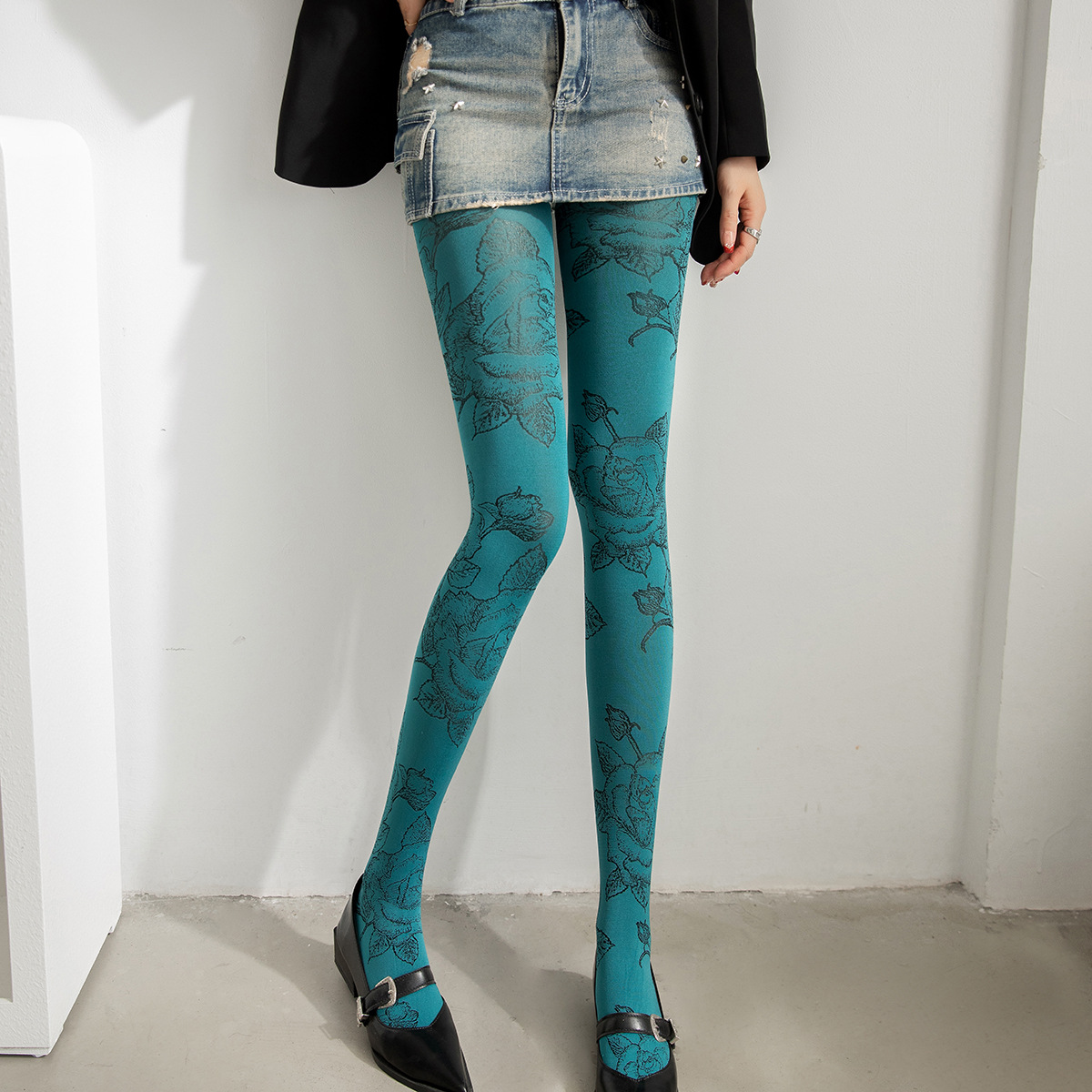2025 봄 여름 신제품 맞춤형 로즈 다크 플라워 레깅스 섹시 트렌디 자카드 스타킹 여성용 내구성 양말스토어 가기