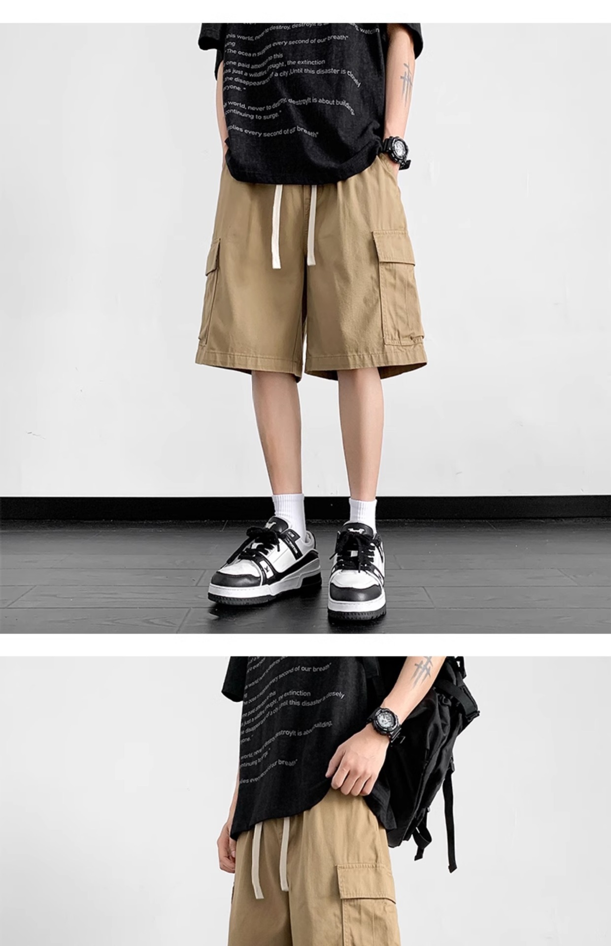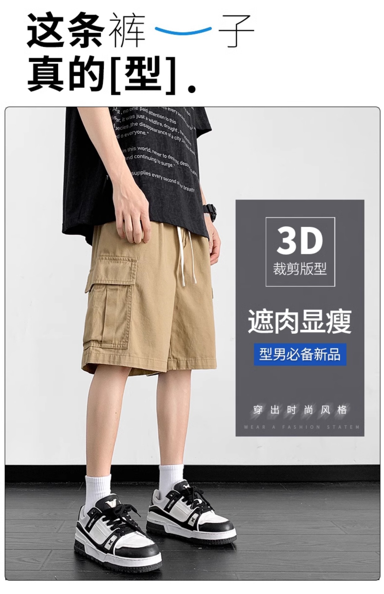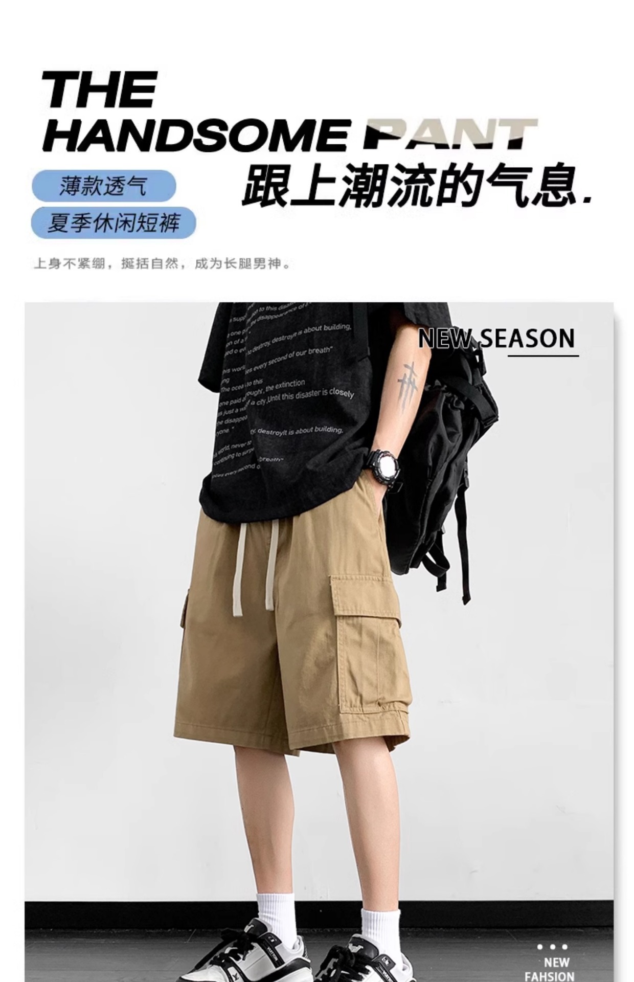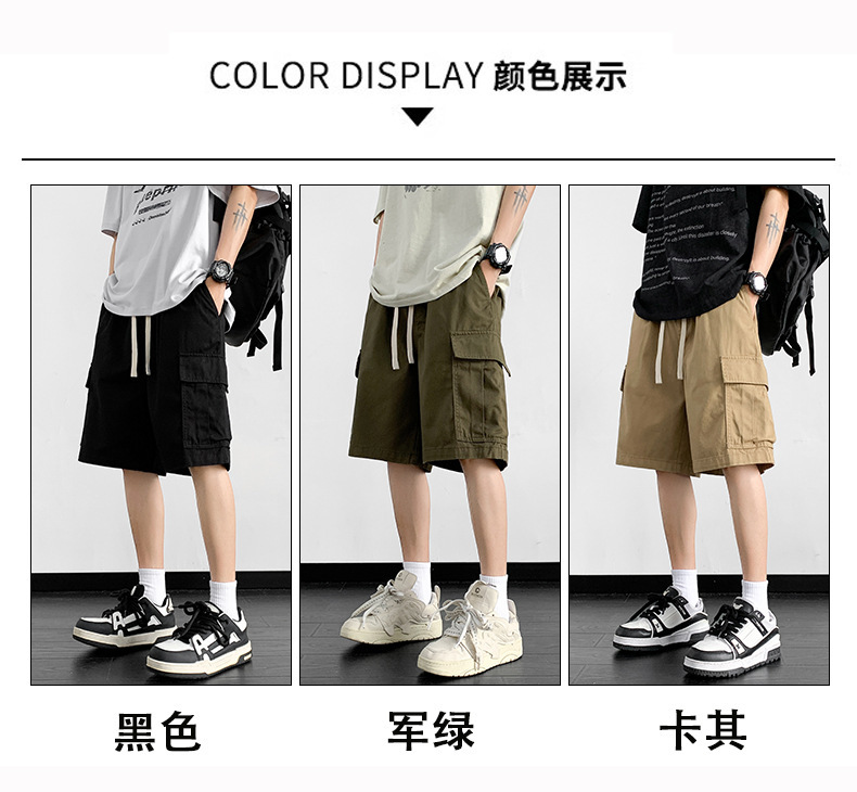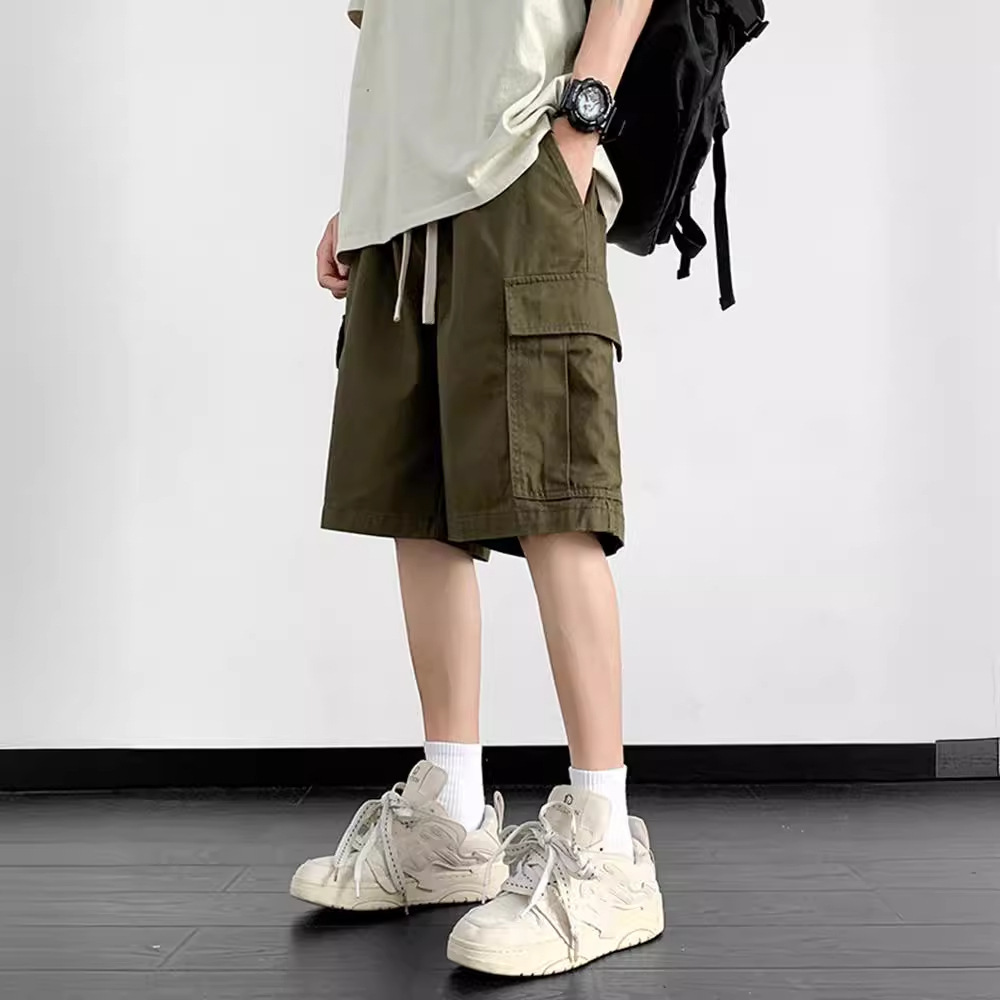 여름 트렌디 카고 반바지 남성용 미국식 얇은 루즈한 5부 바지 솔리드 컬러 캐주얼 스트레이트 코튼 스포츠 바지스토어 가기