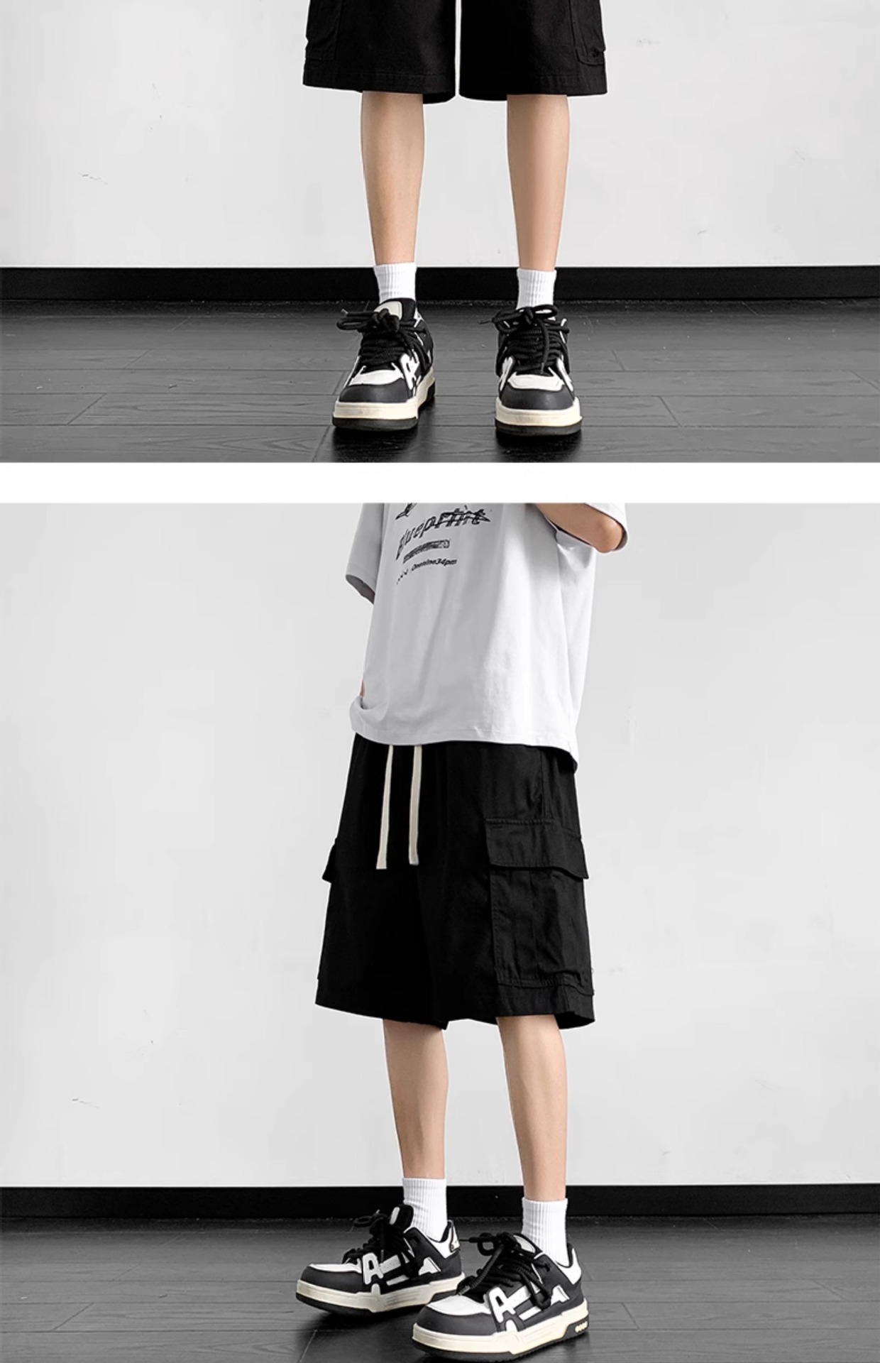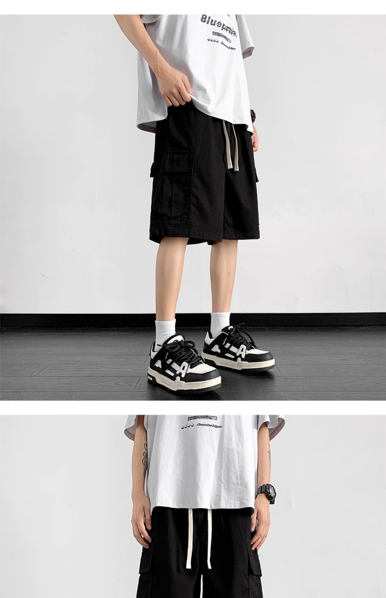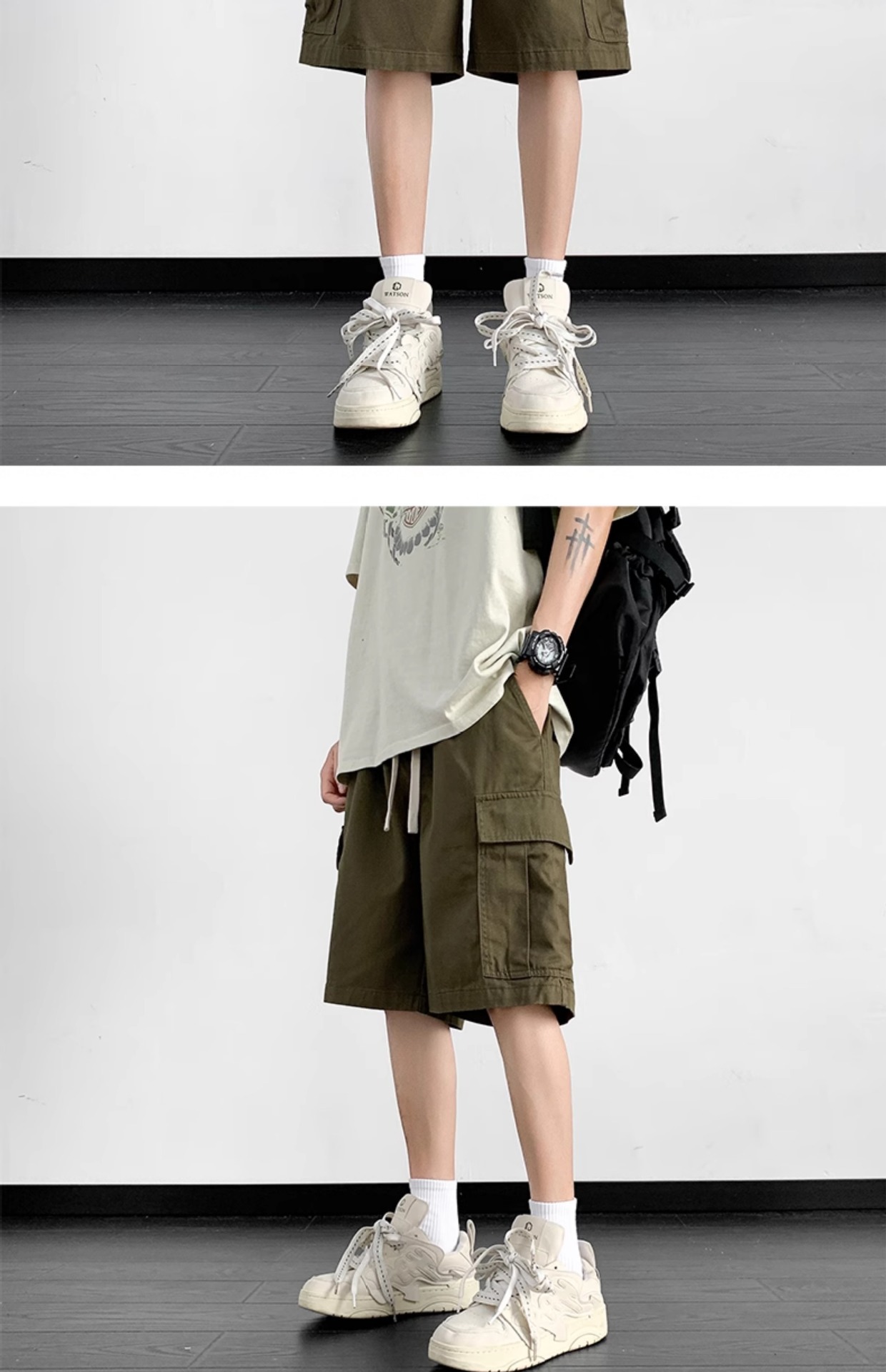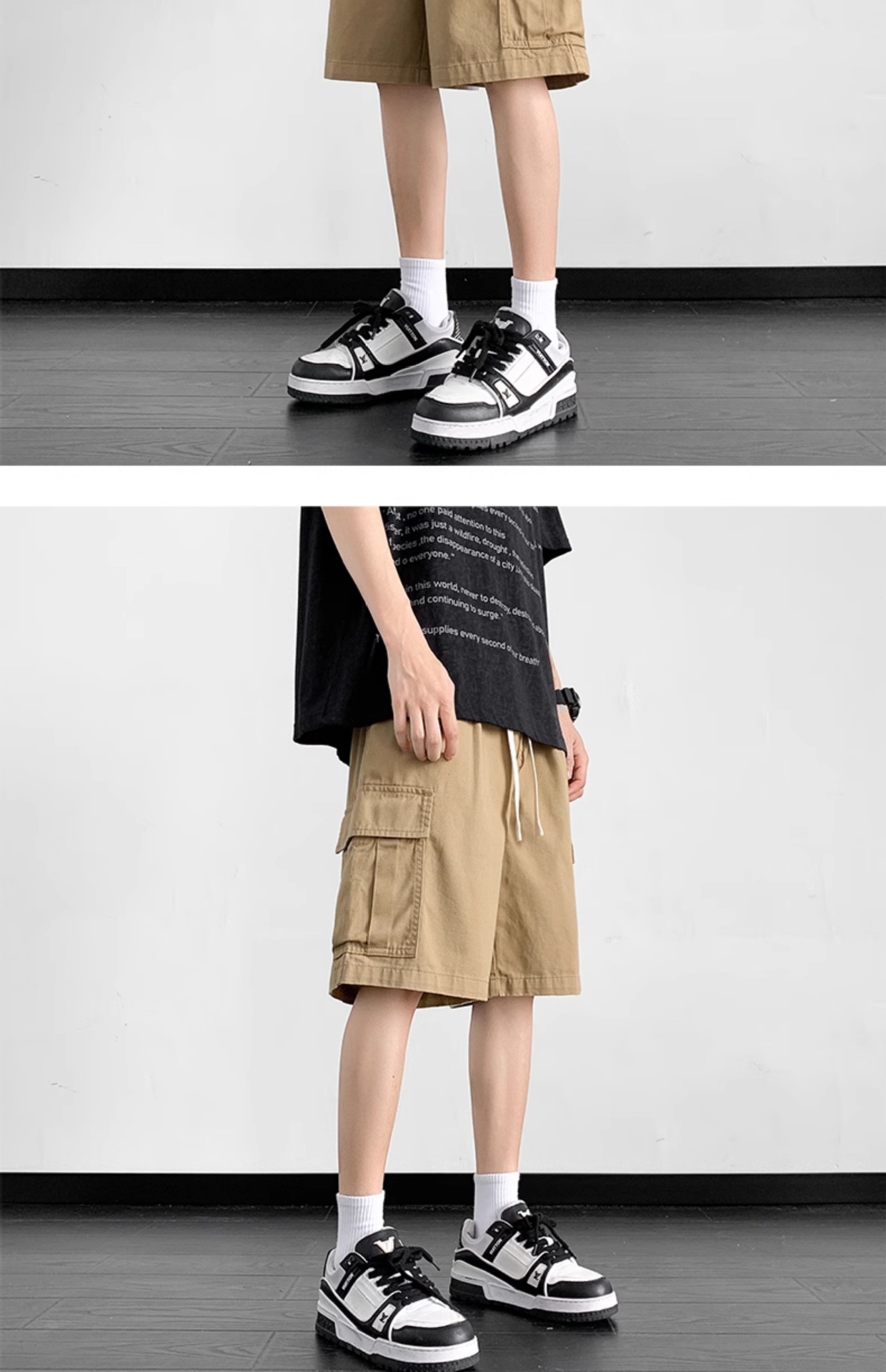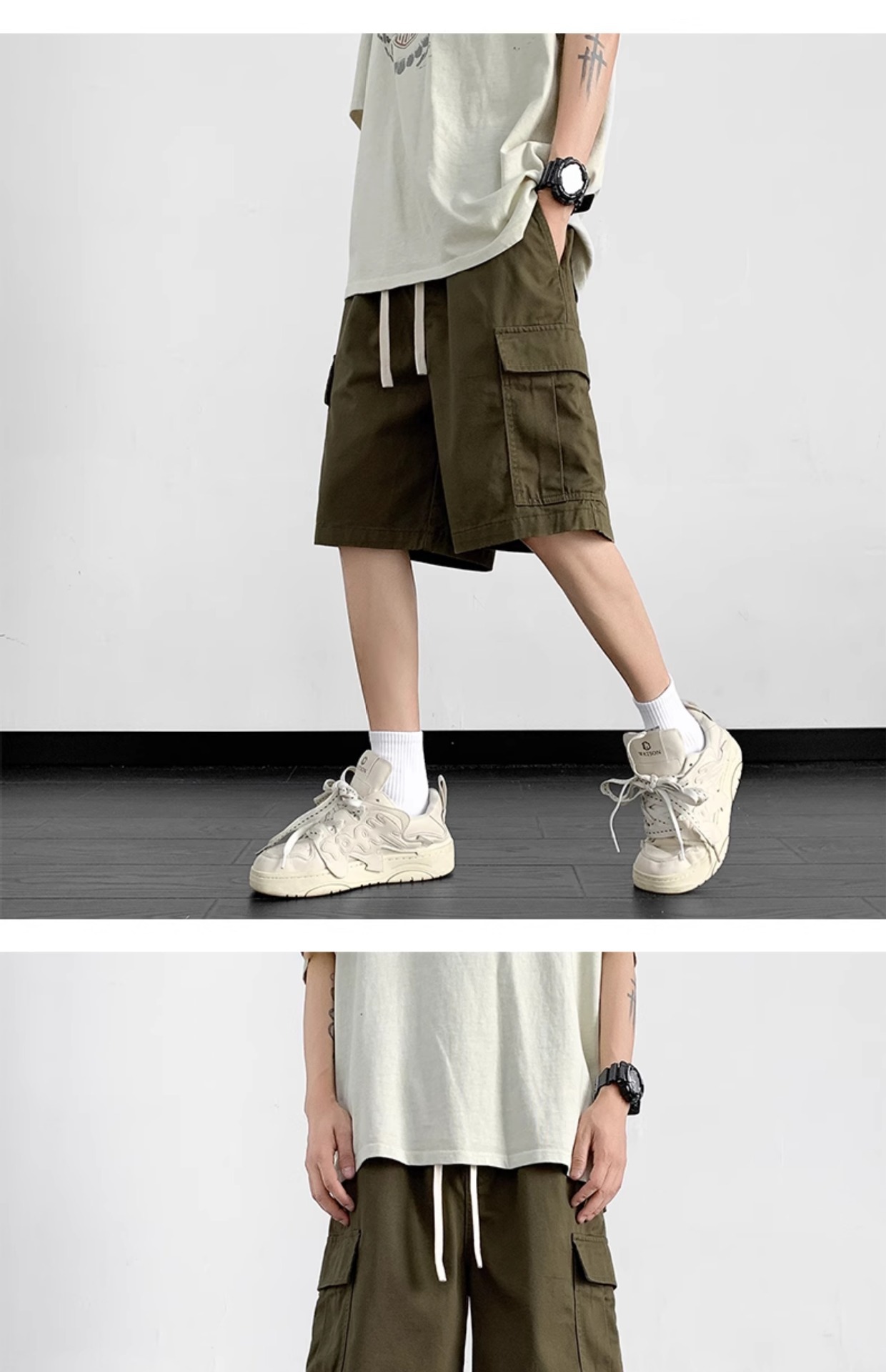 여름 트렌디 카고 반바지 남성용 미국식 얇은 루즈한 5부 바지 솔리드 컬러 캐주얼 스트레이트 코튼 스포츠 바지스토어 가기