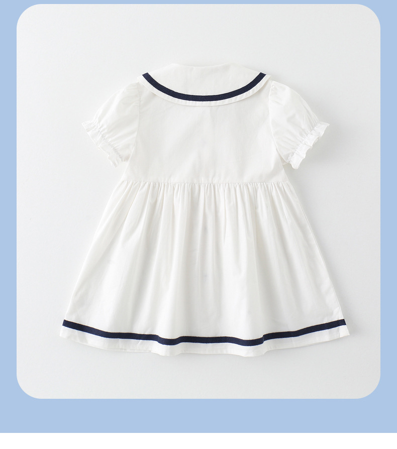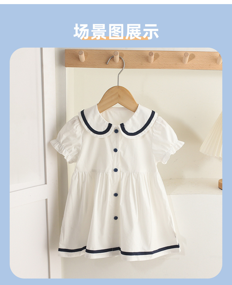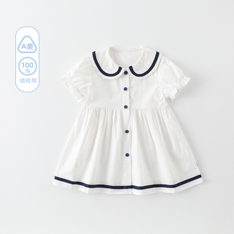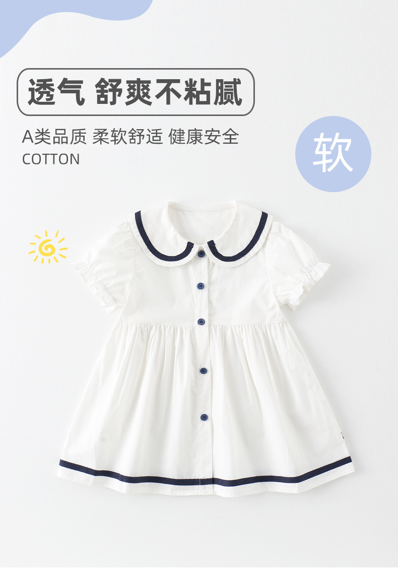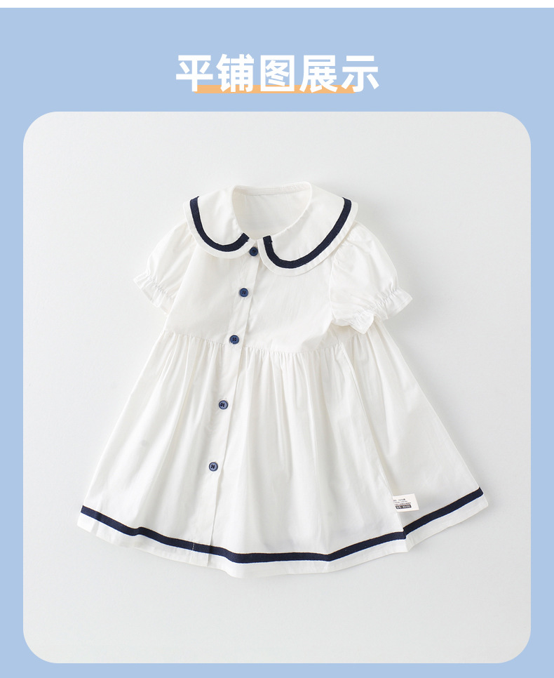 어린이 드레스 소녀 해군 칼라 스커트 반팔 아기 소녀 새로운 여름 드레스 대학 스타일 공주 드레스 아동 의류 순수 코튼