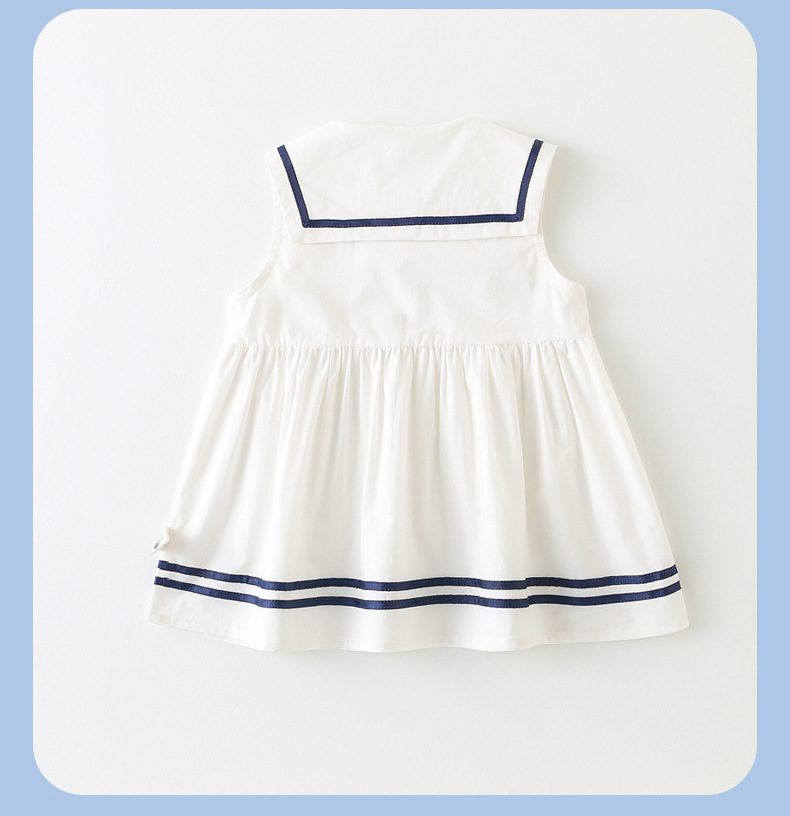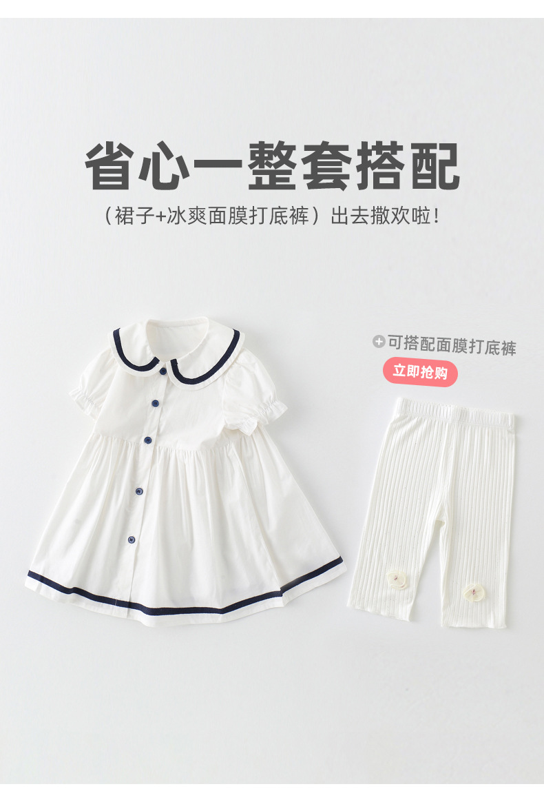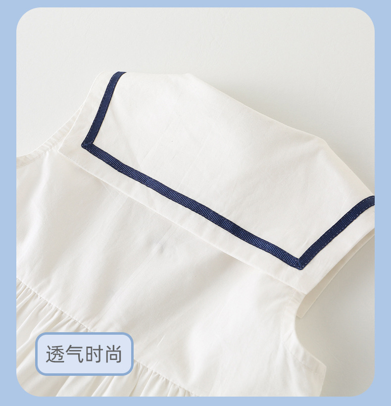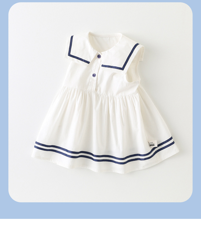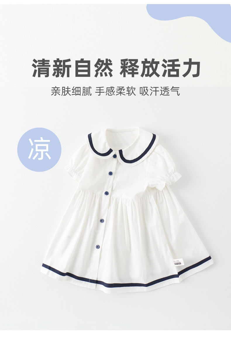 어린이 드레스 소녀 해군 칼라 스커트 반팔 아기 소녀 새로운 여름 드레스 대학 스타일 공주 드레스 아동 의류 순수 코튼