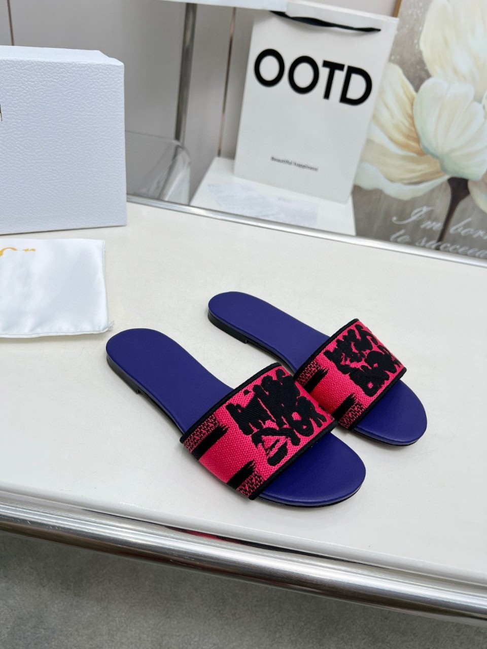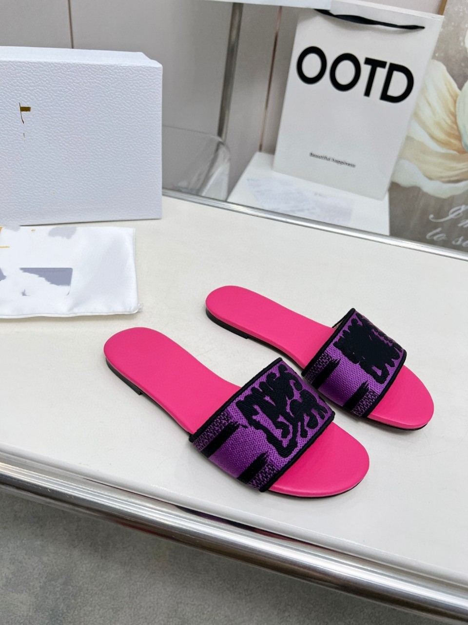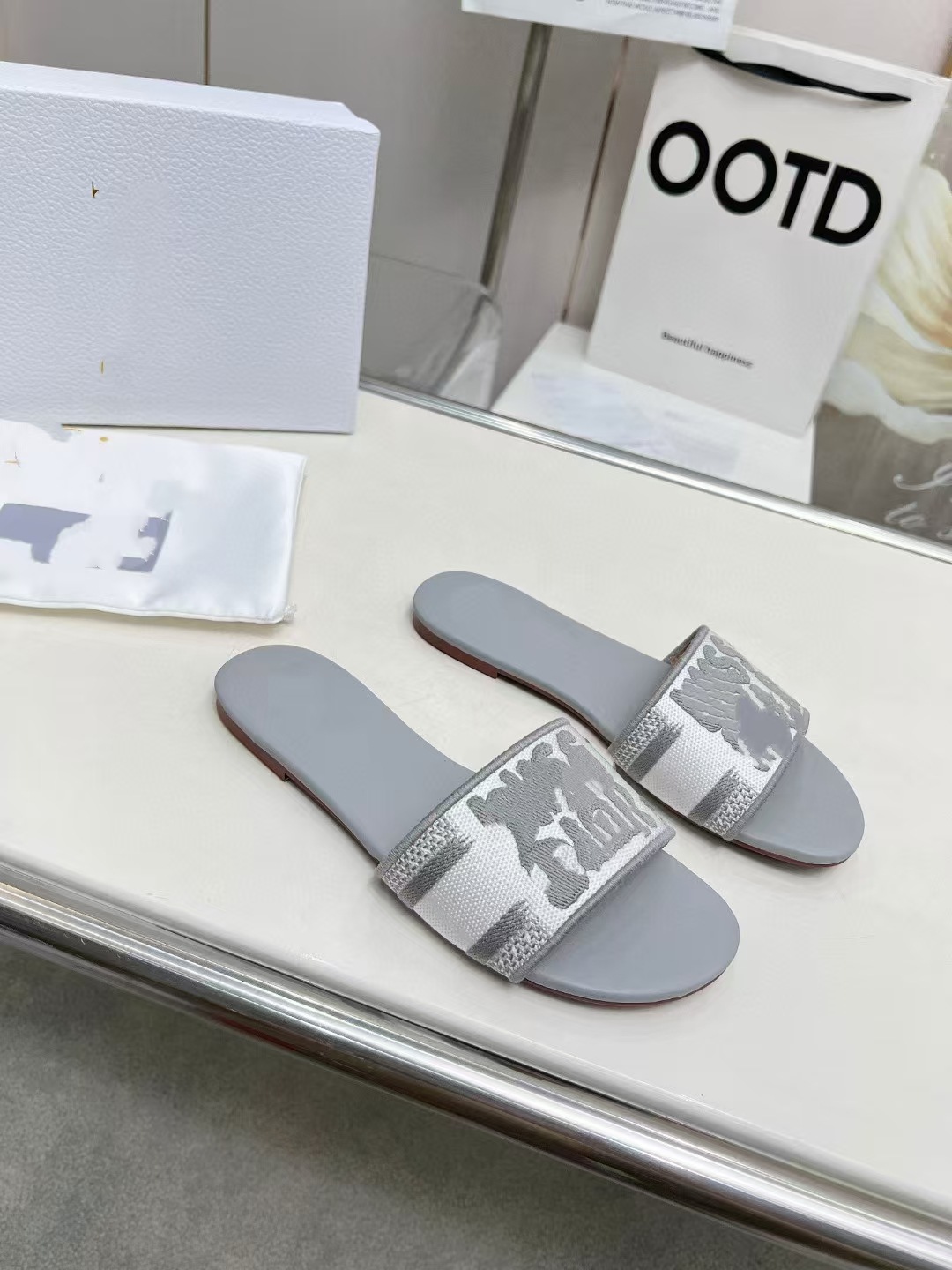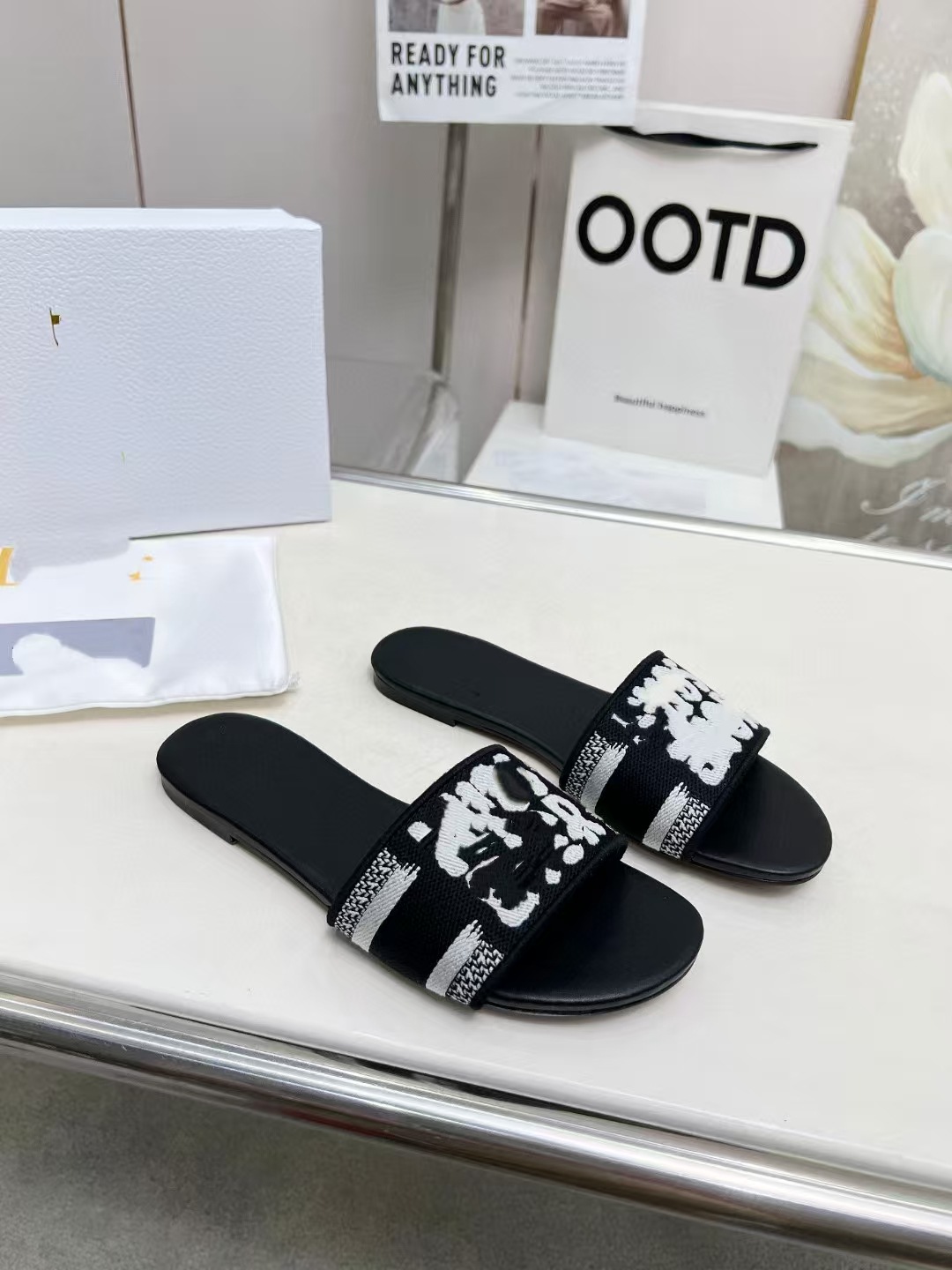 2025 새로운 유럽과 미국의 여성 중동 두바이 나이지리아 플랫 자수 플러스 사이즈 슬리퍼스토어 가기