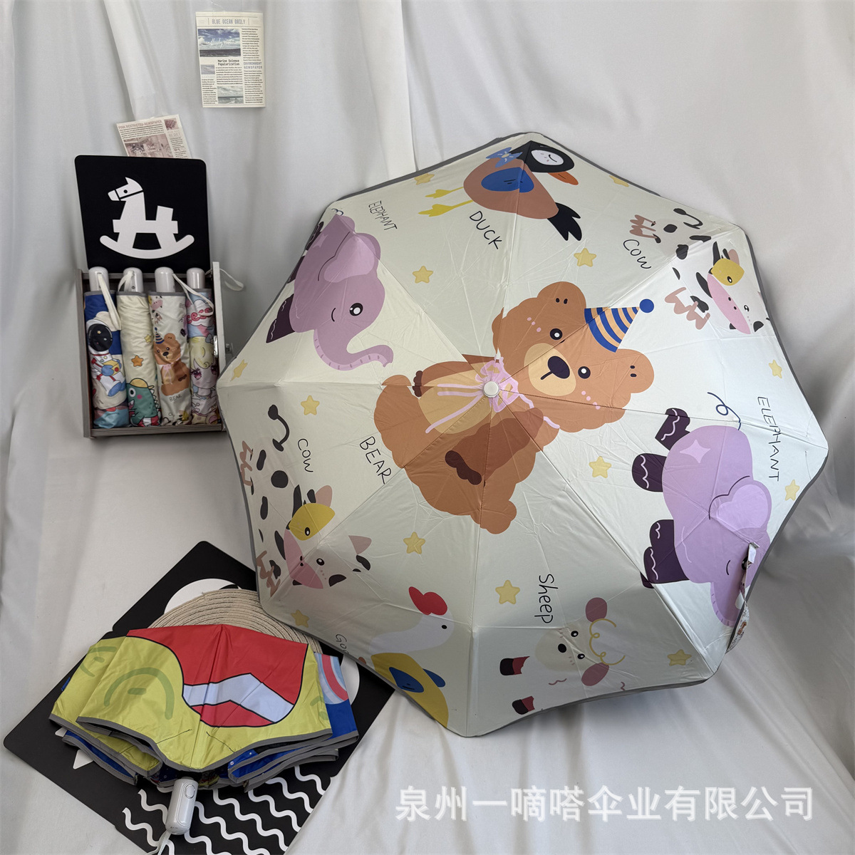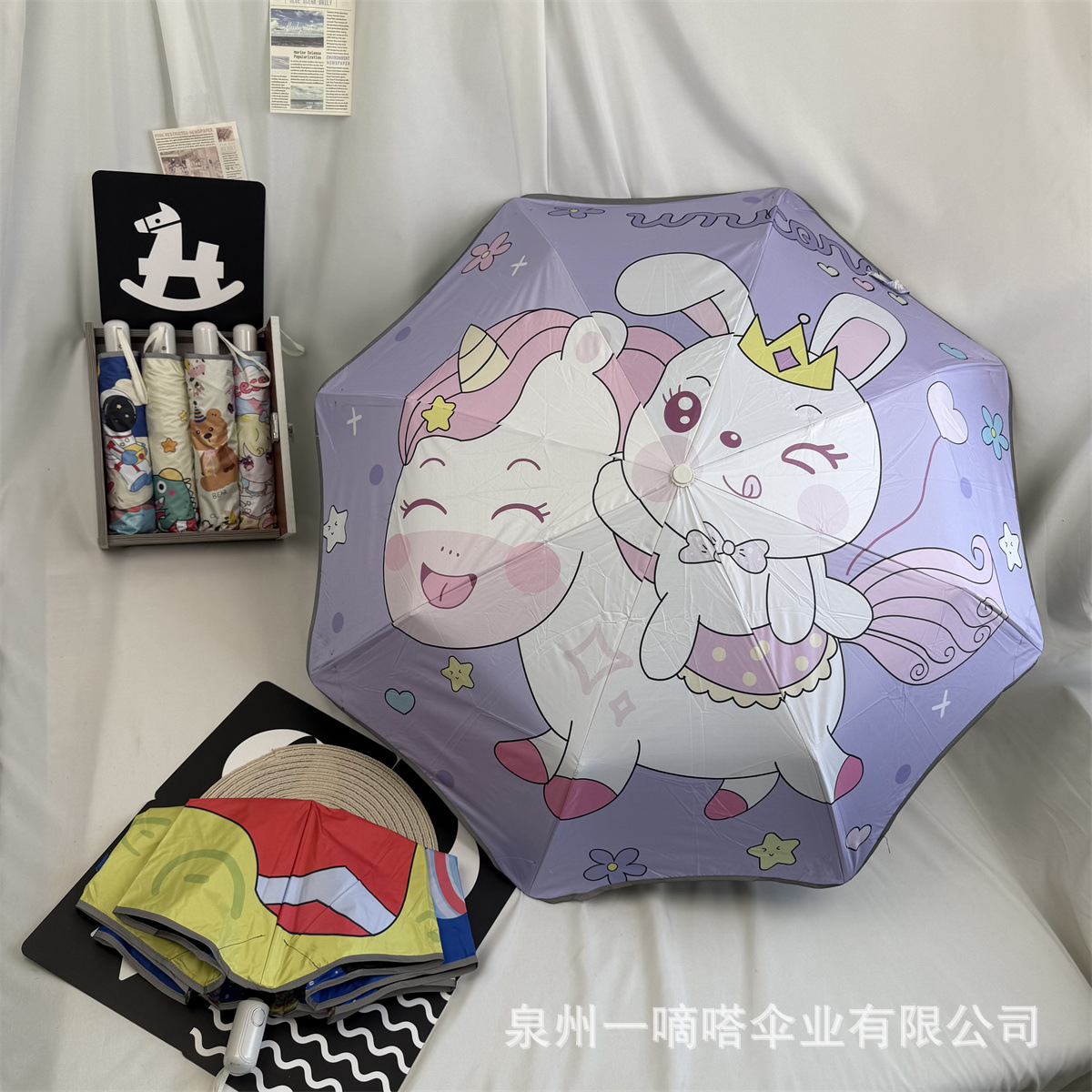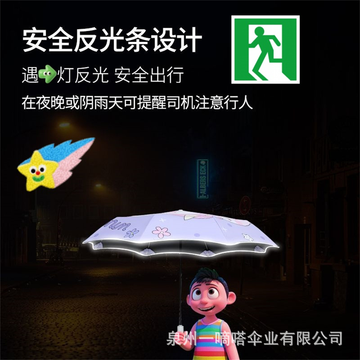 아기 우산 둥근 모서리 어린이 만화 안티 스파이크 반사 스트립 우산 만화 귀여운 비닐 태양 보호 우산 비 또는 빛 우산