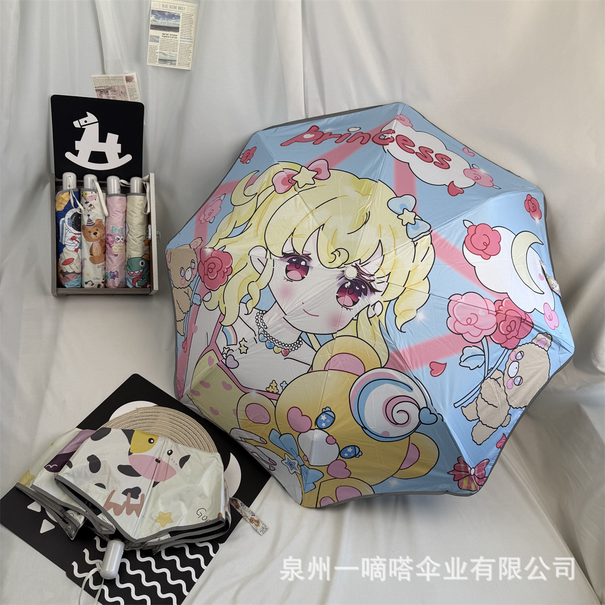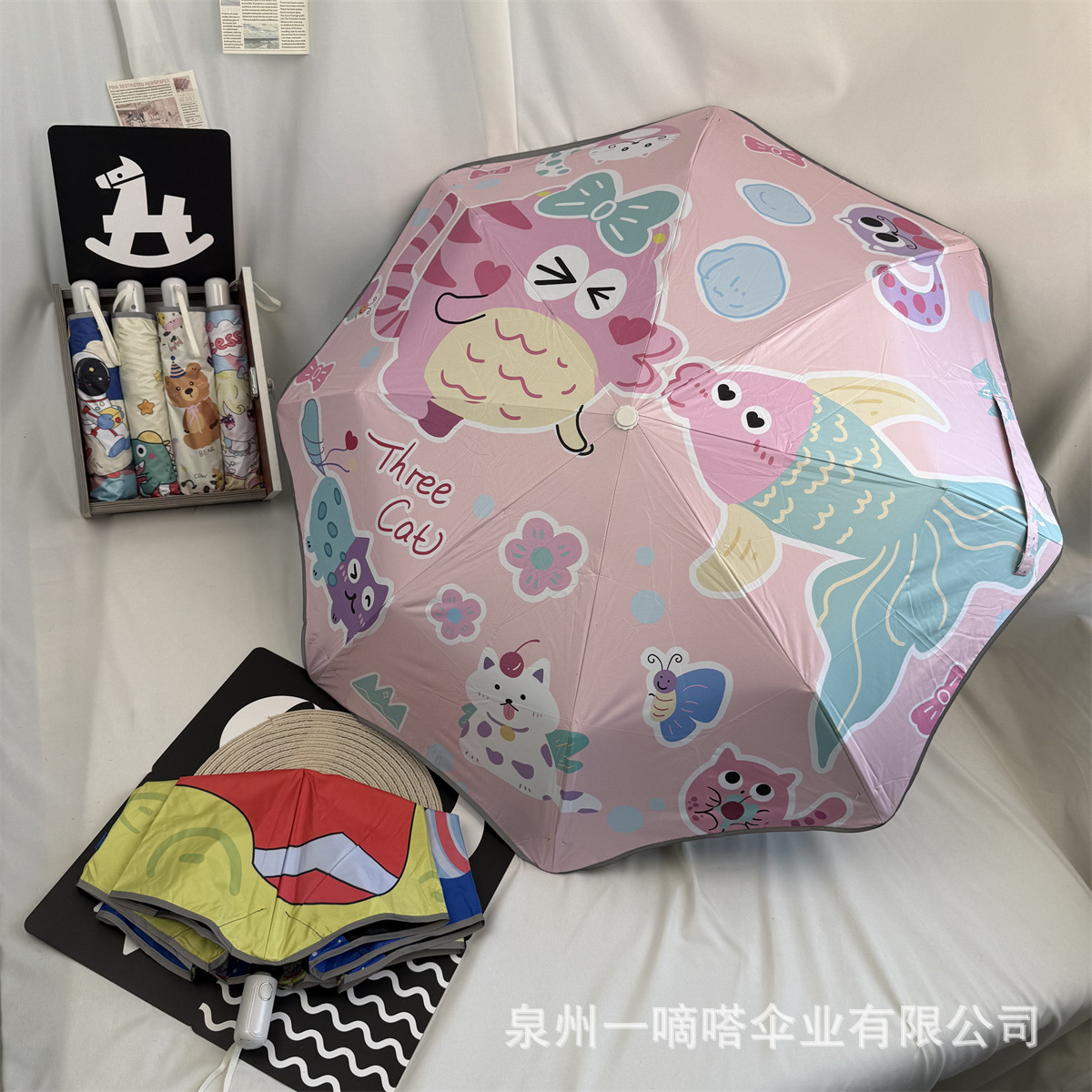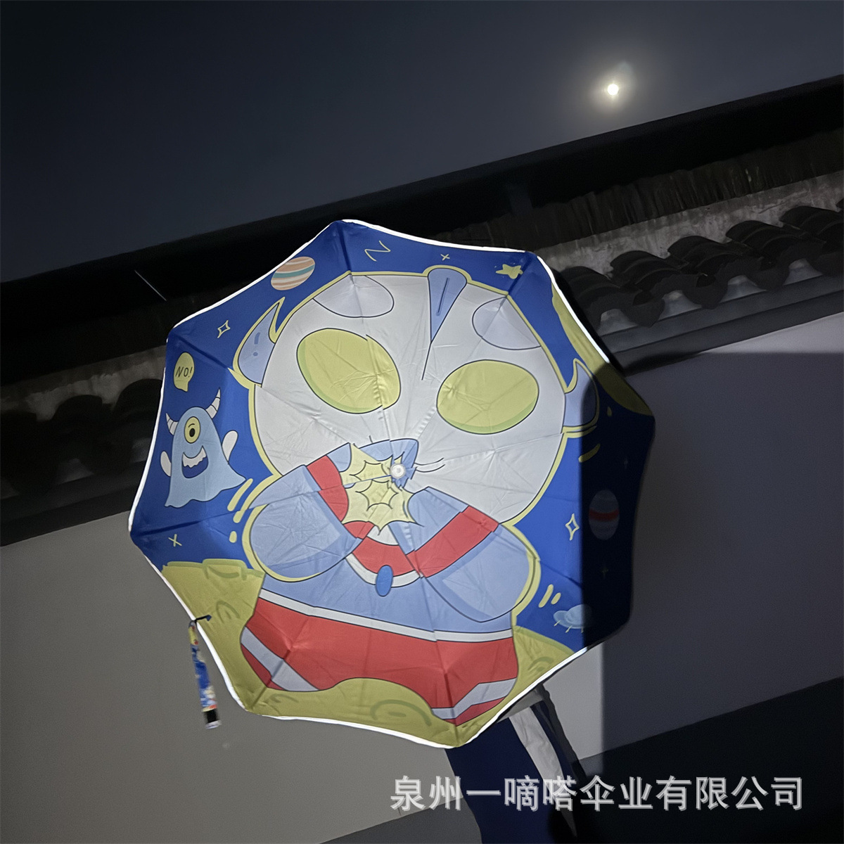 아기 우산 둥근 모서리 어린이 만화 안티 스파이크 반사 스트립 우산 만화 귀여운 비닐 태양 보호 우산 비 또는 빛 우산