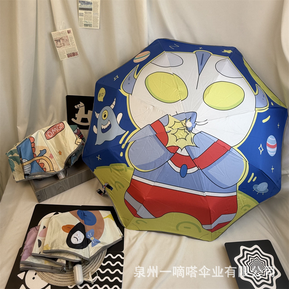 아기 우산 둥근 모서리 어린이 만화 안티 스파이크 반사 스트립 우산 만화 귀여운 비닐 태양 보호 우산 비 또는 빛 우산스토어 가기