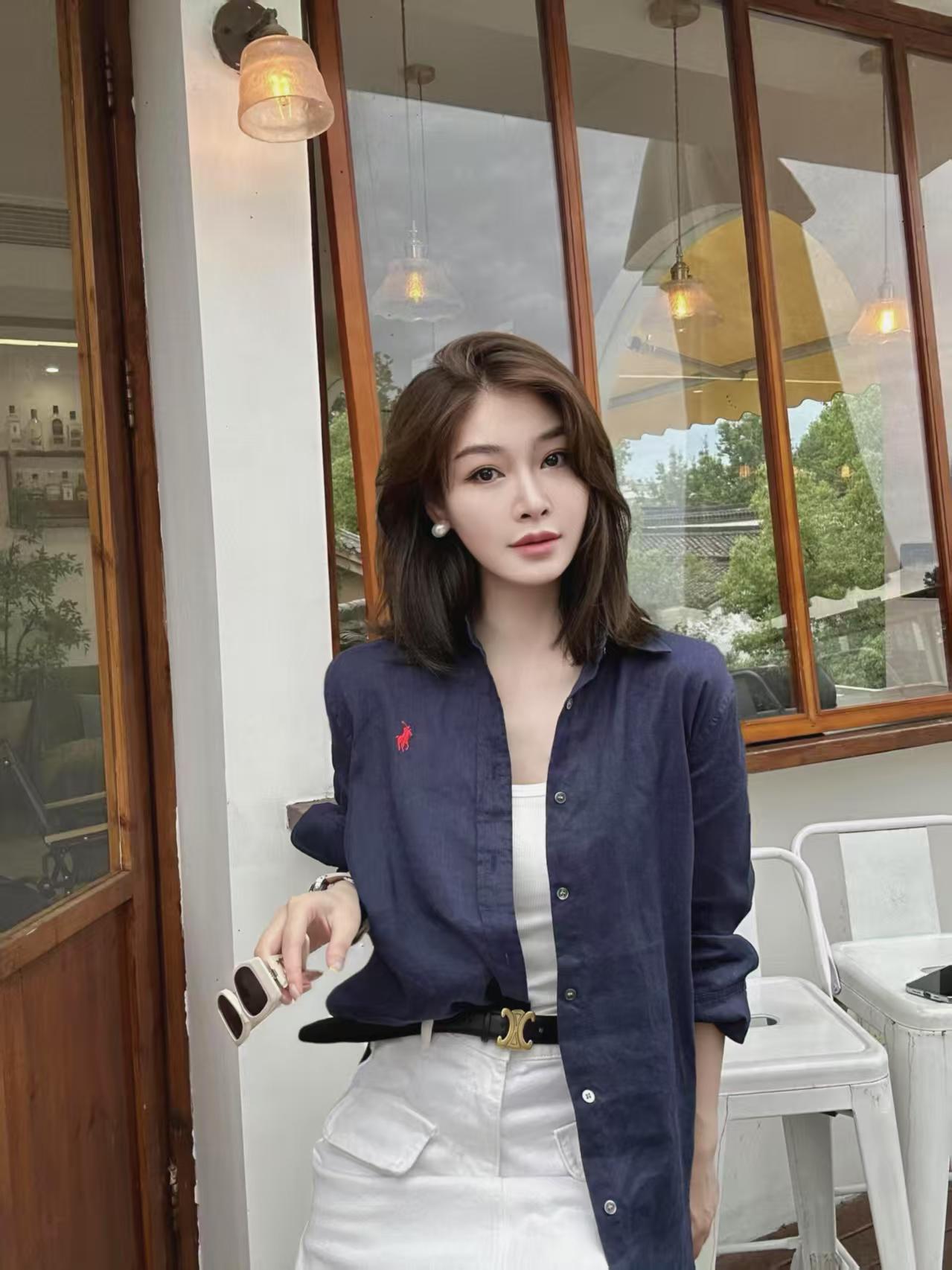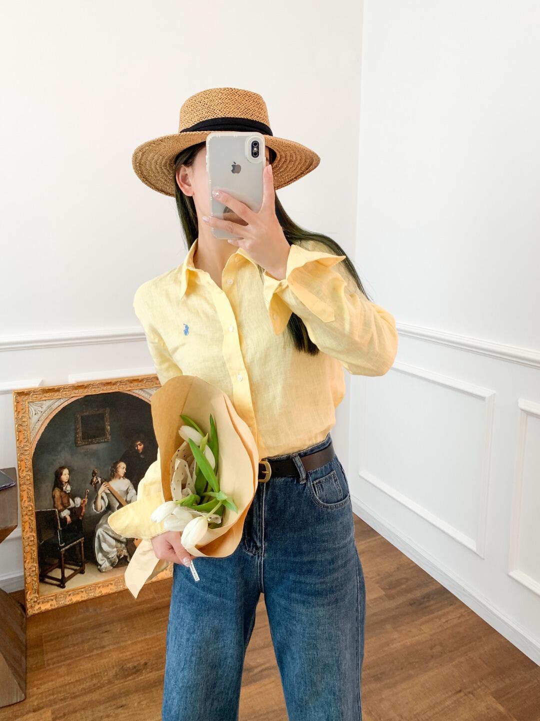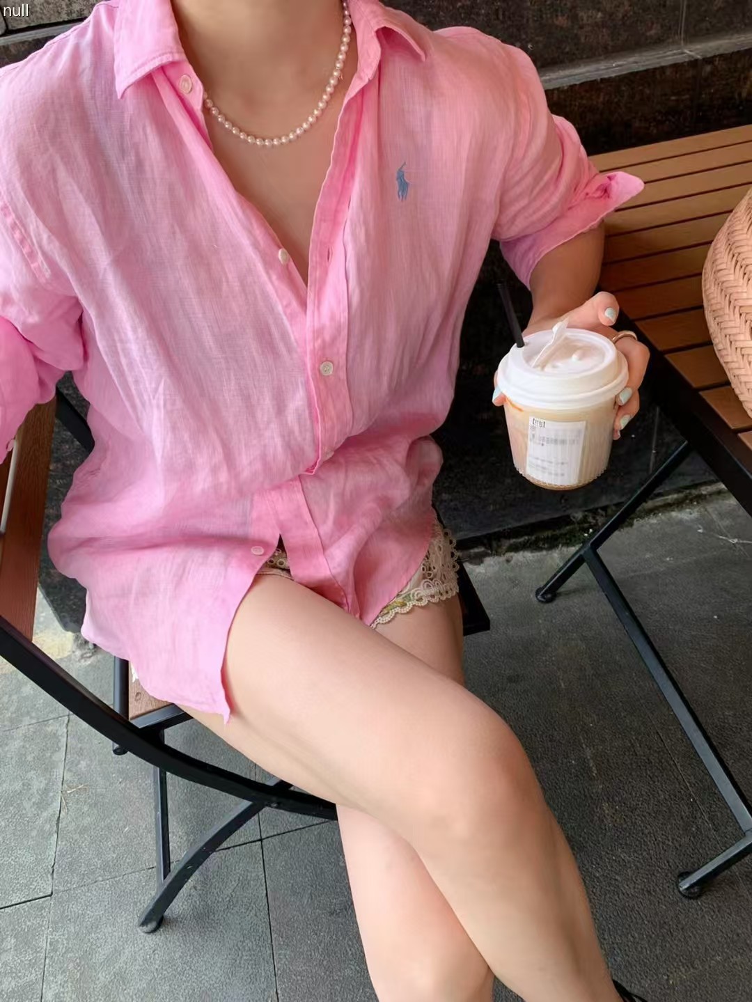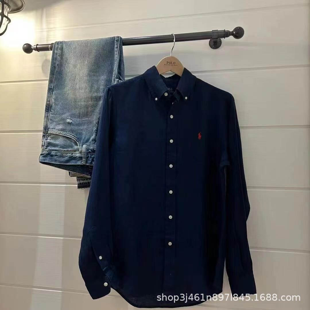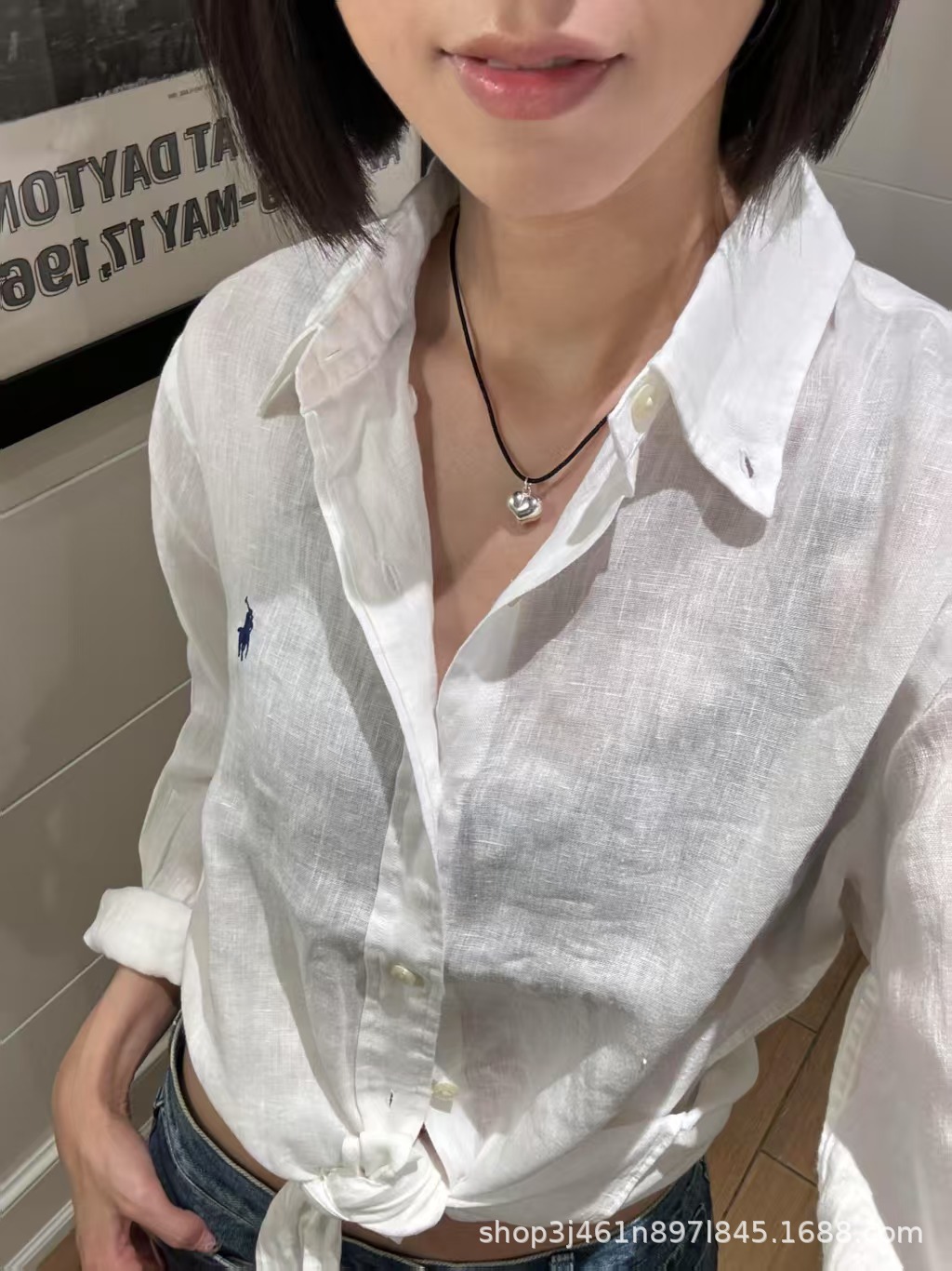 고급 라펠 린넨 셔츠, 자외선 차단 RL 탑, 남녀공용, 포니 로고 자수, 다용도 폴로 칼라 셔츠스토어 가기