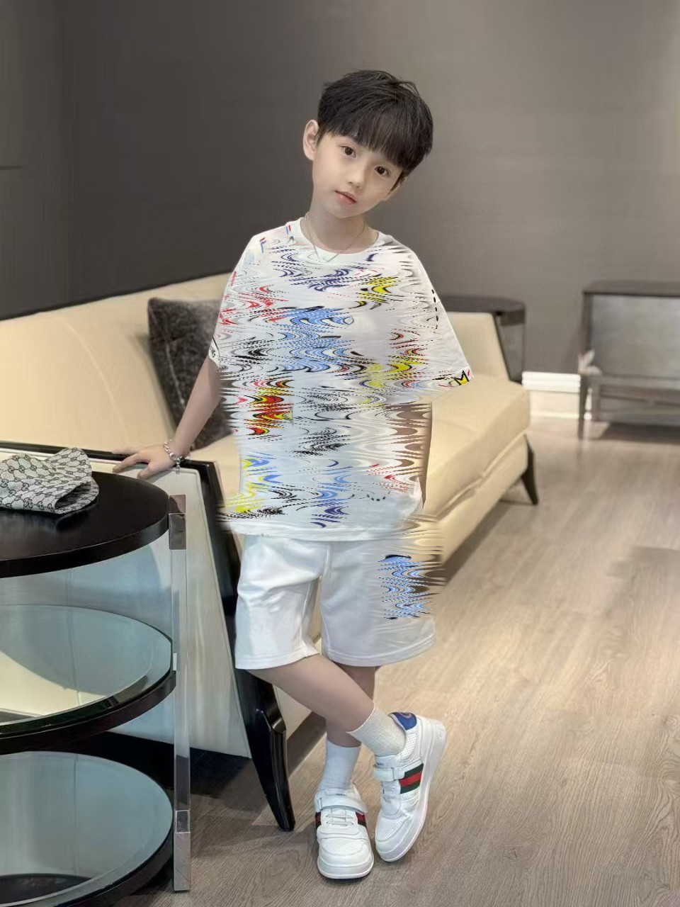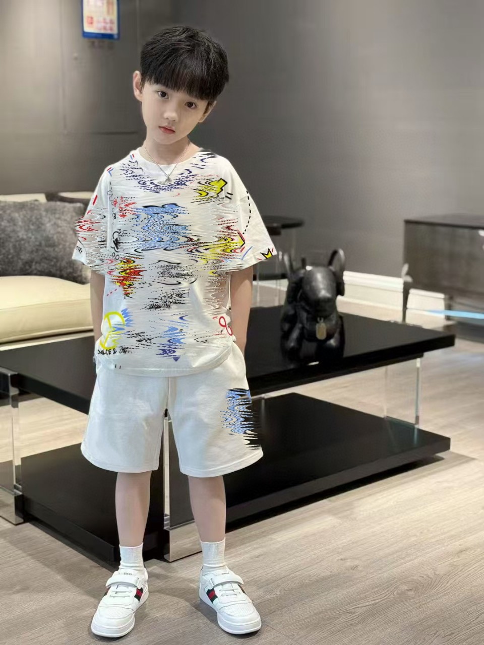 25 새로운 여름 어린이 정장 3D 인쇄 유럽과 미국의 캐주얼 스포츠 소년 투피스 세트 수출 국경 간 공장스토어 가기