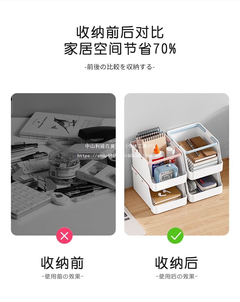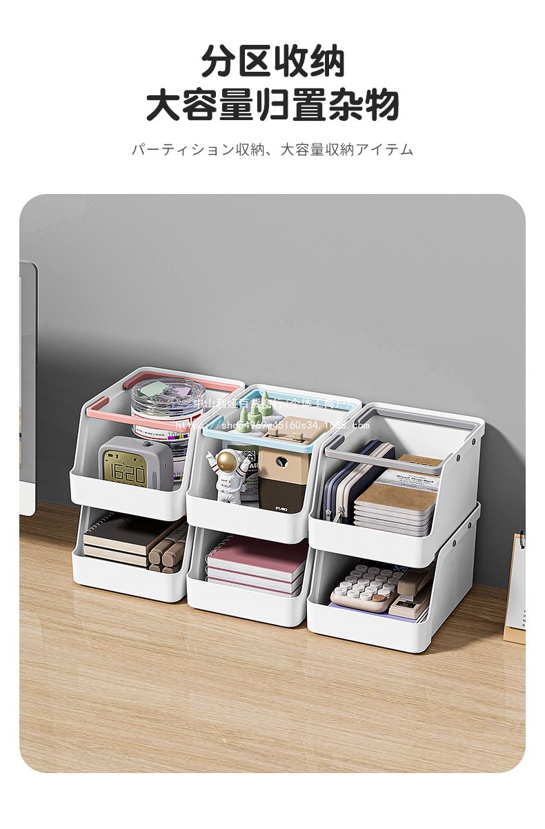 데스크탑 수납 선반, 휴대용 간식 및 잡화 정리 바구니, 플라스틱 바구니, 사무실 책상 문구류와 함께 쌓을 수 있음스토어 가기