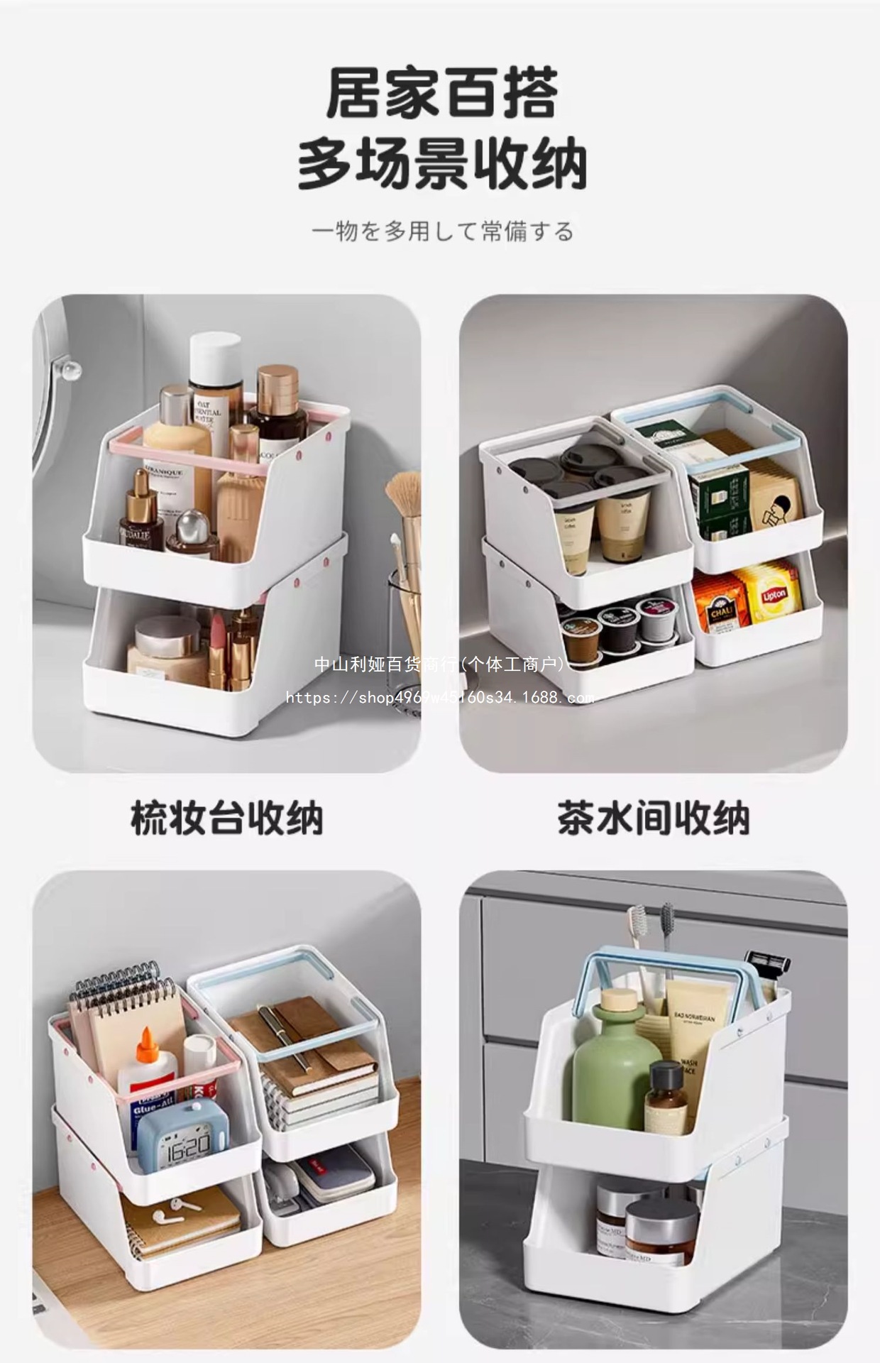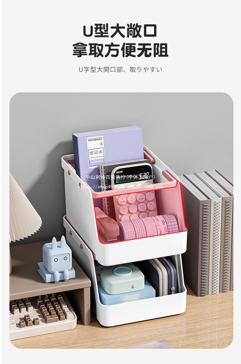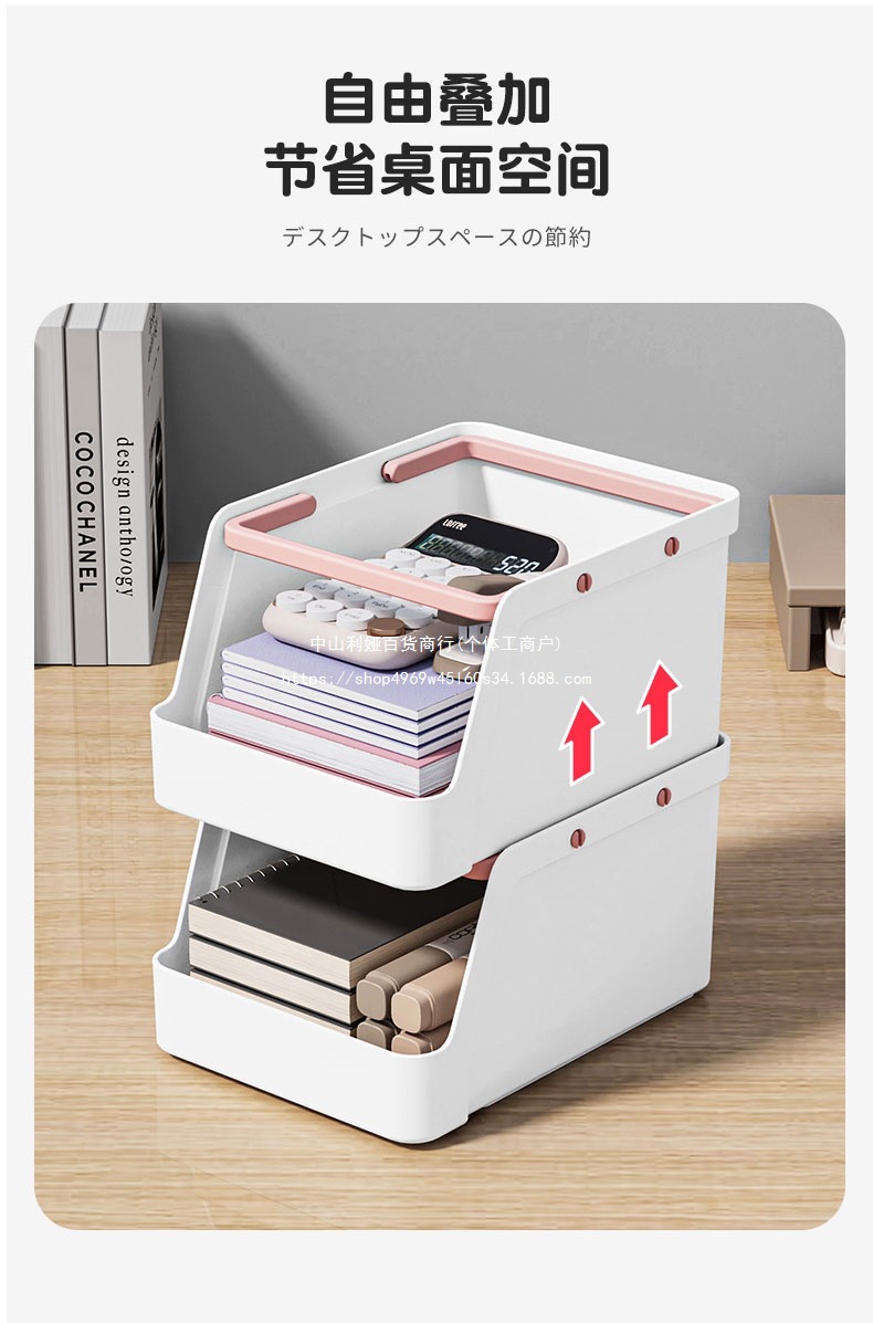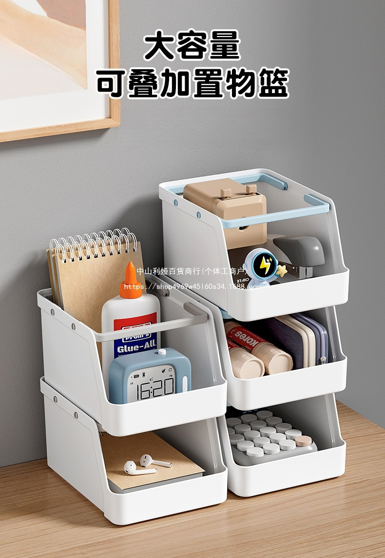 데스크탑 수납 선반, 휴대용 간식 및 잡화 정리 바구니, 플라스틱 바구니, 사무실 책상 문구류와 함께 쌓을 수 있음