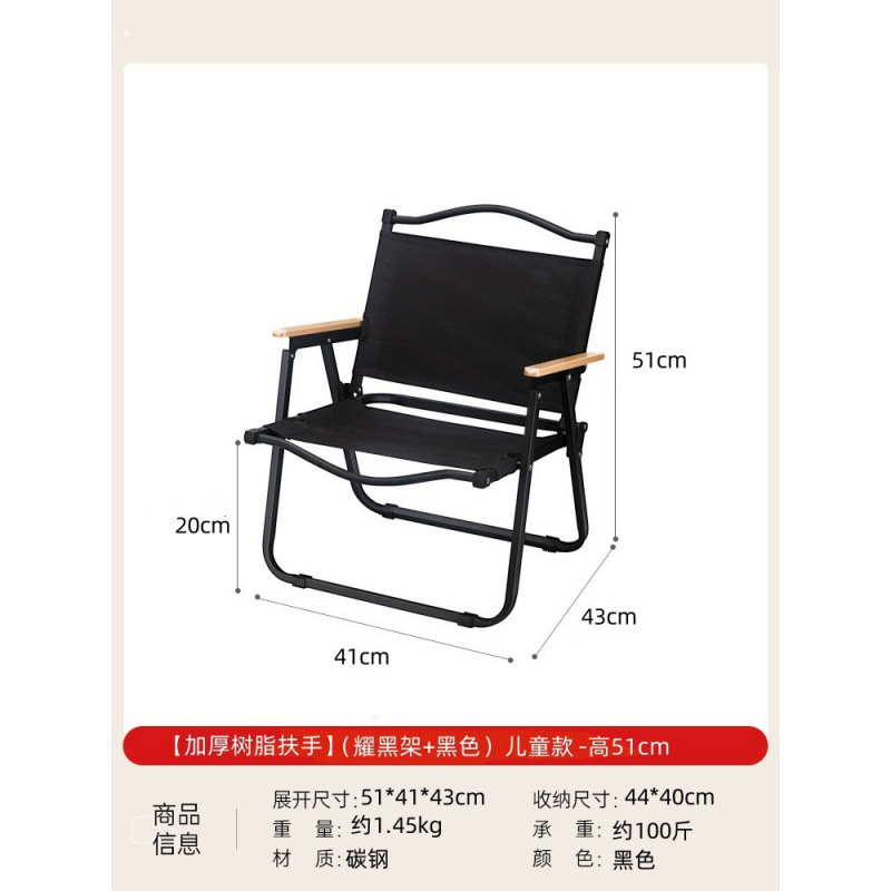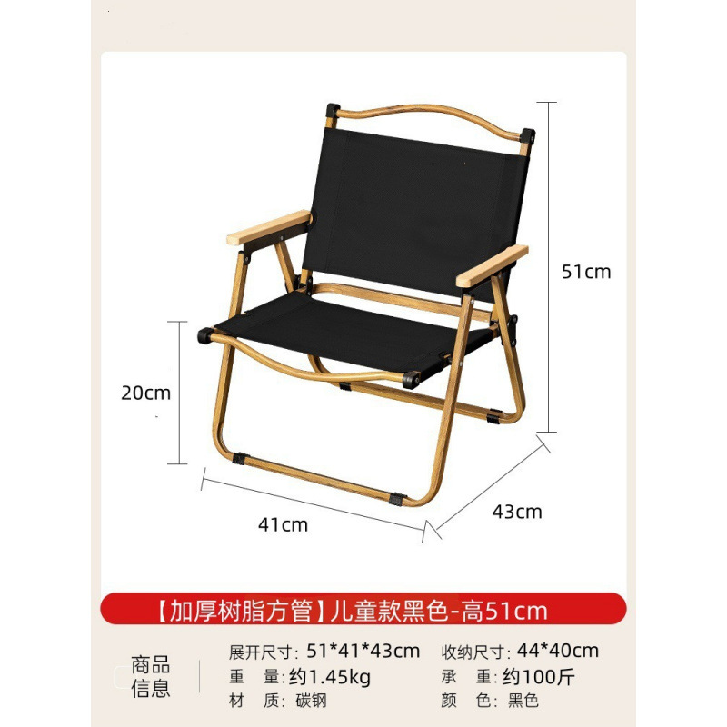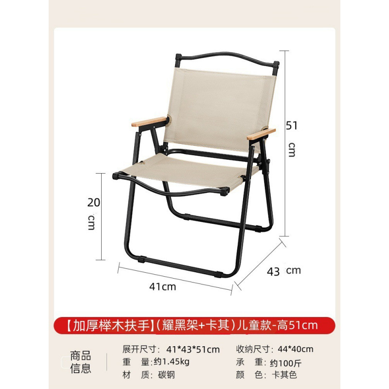 • [두꺼운 너도밤나무 팔걸이] (블랙 프레임 + 카키) 어린이 스타일 [사각 튜브]
