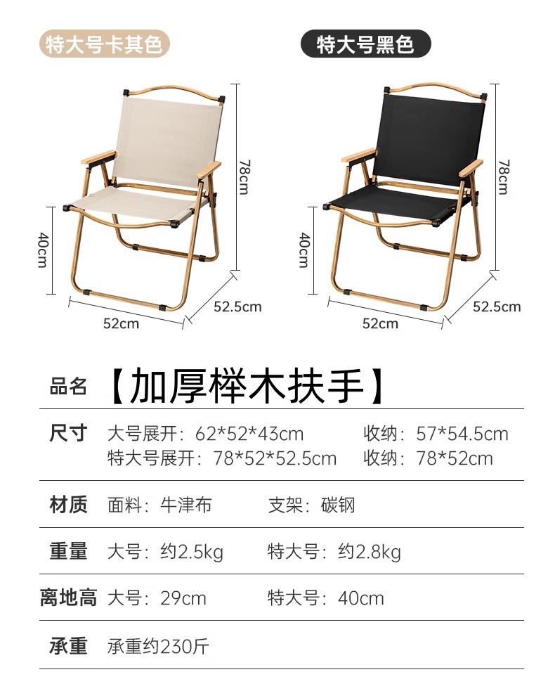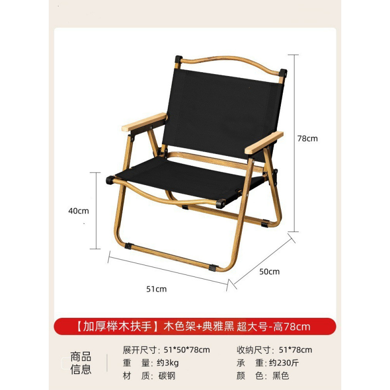 • [두꺼운 너도밤나무 팔걸이] (블랙 프레임 + 카키) 특대형 [사각 튜브]