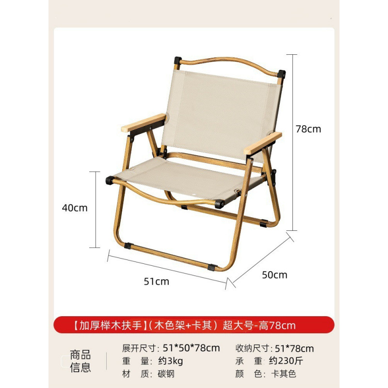 • [두꺼운 너도밤나무 팔걸이] (우드컬러 프레임 + 카키) 특대형 [사각튜브]