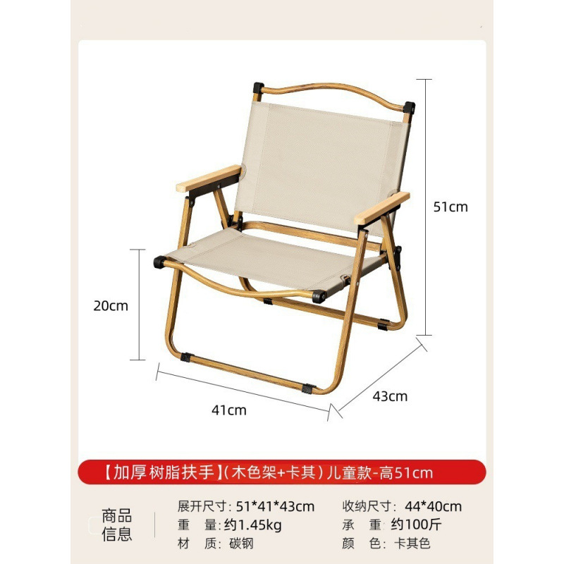 • [두꺼운 너도밤나무 팔걸이] (우드컬러 프레임 + 카키) 어린이 스타일 [사각튜브]