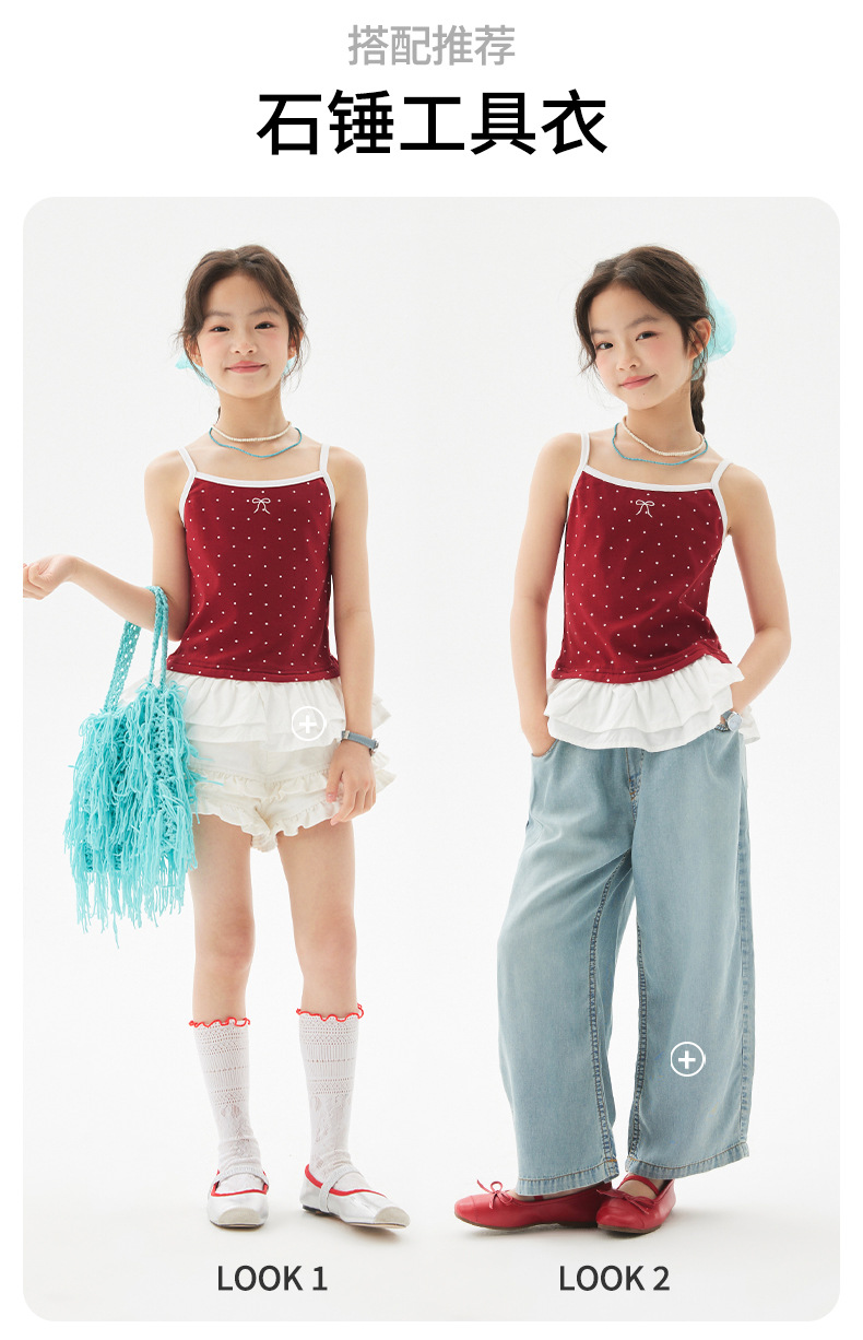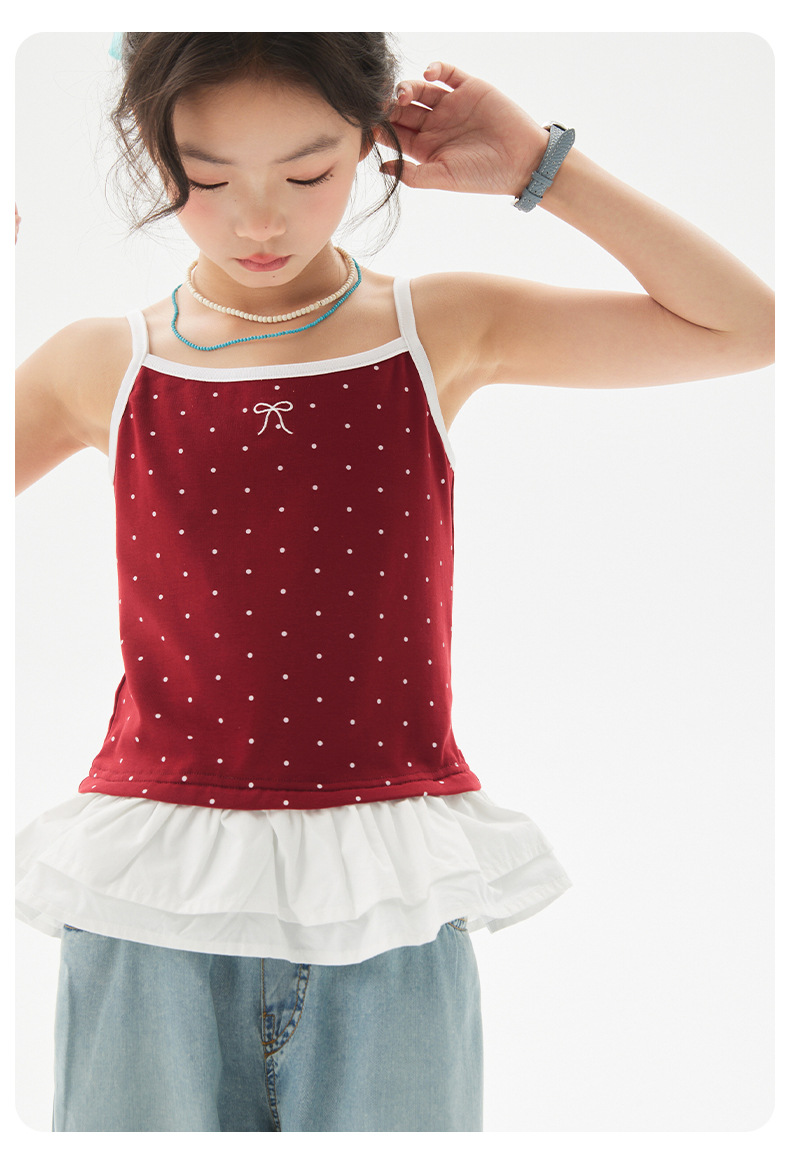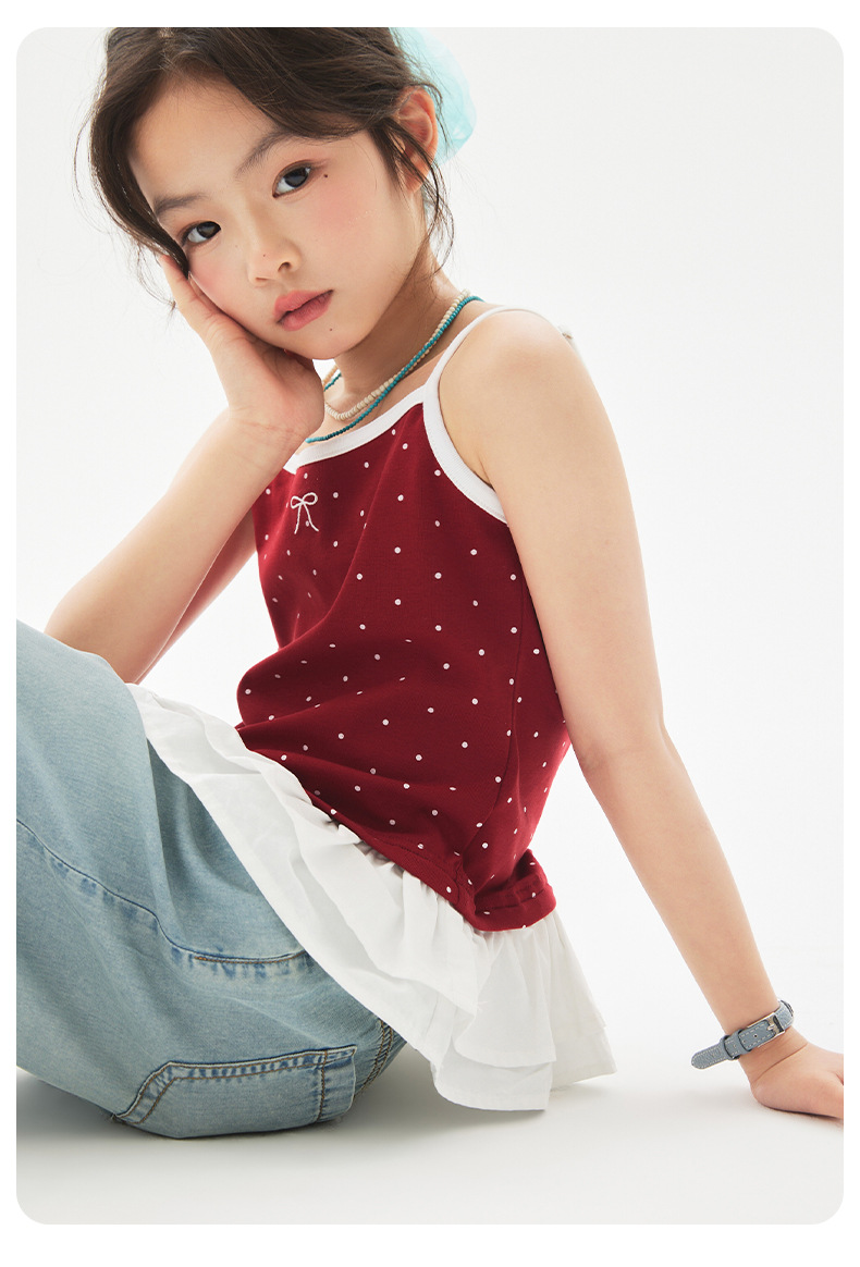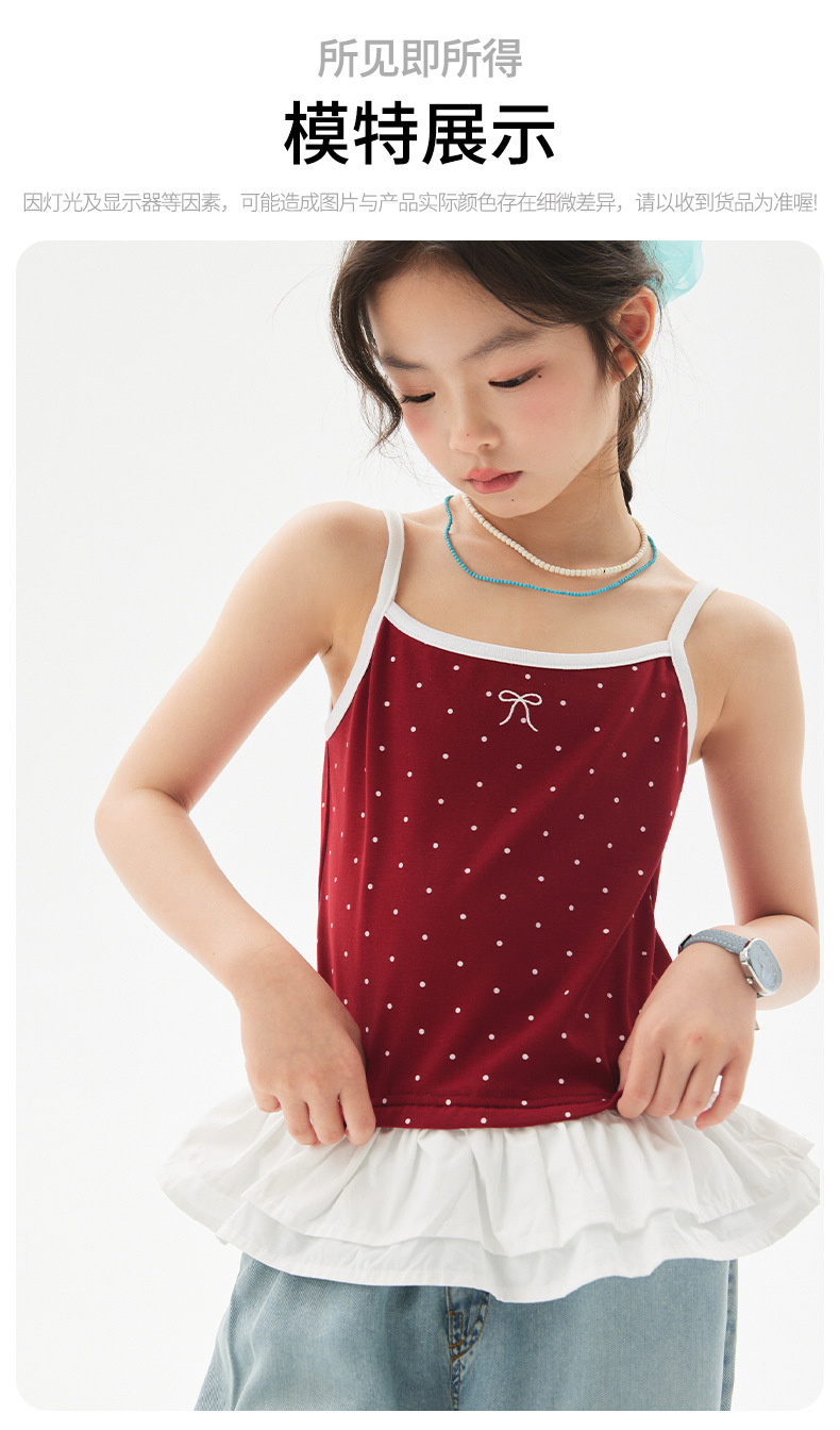 소녀 스티칭 레이스 슬립 셔츠 2025 여름 새로운 어린이 캐주얼 얇은 아동복 조끼 중 큰 어린이 티셔츠스토어 가기
