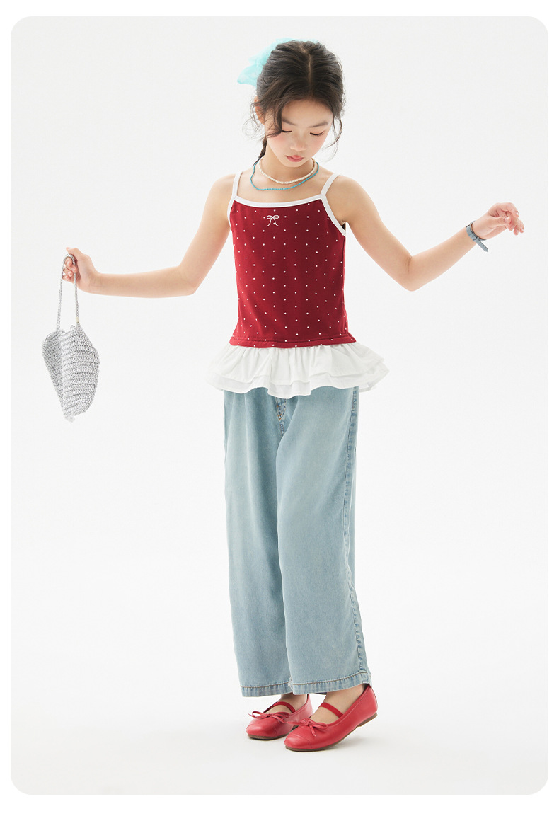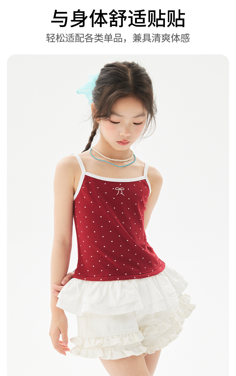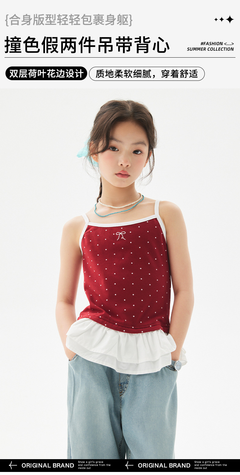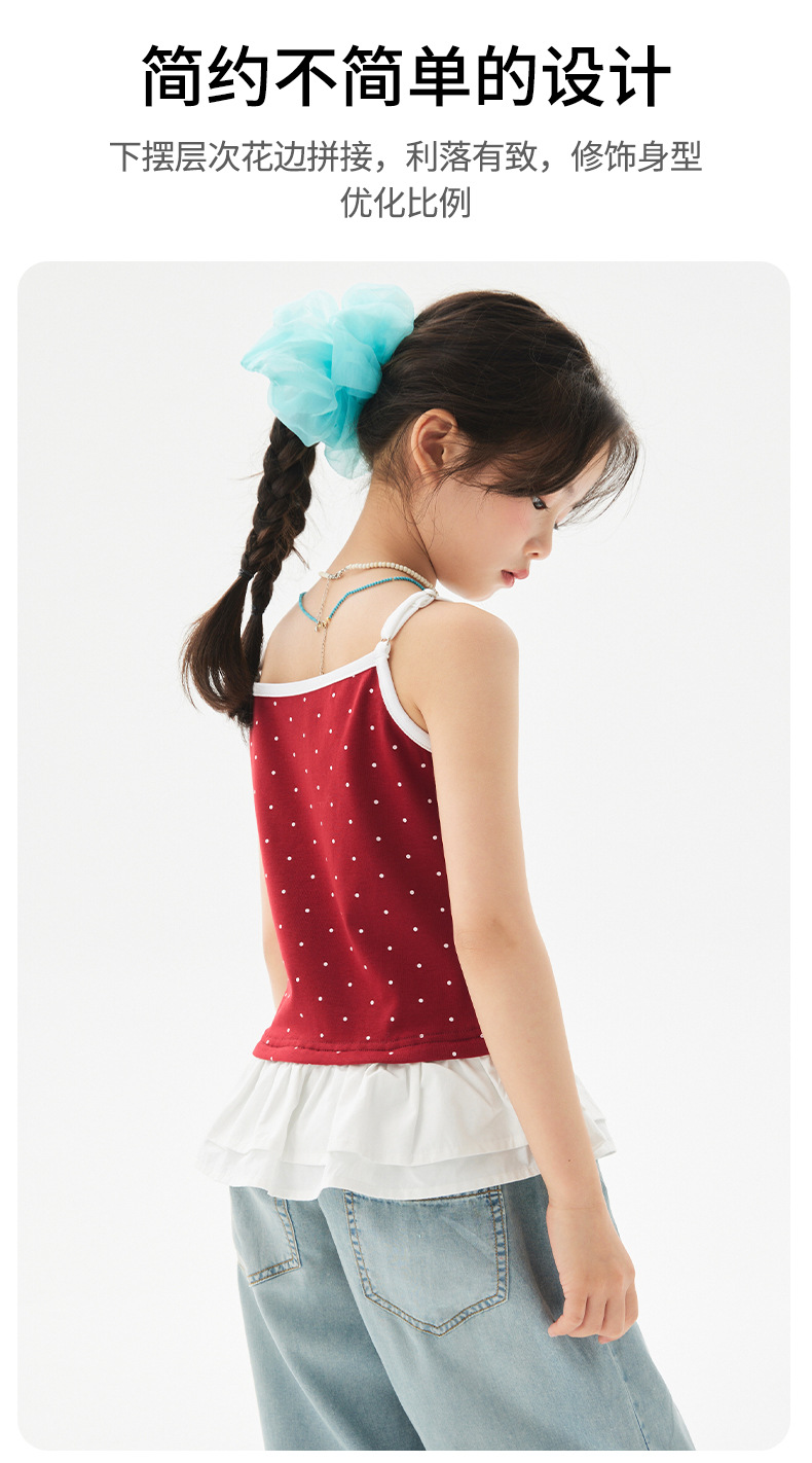 소녀 스티칭 레이스 슬립 셔츠 2025 여름 새로운 어린이 캐주얼 얇은 아동복 조끼 중 큰 어린이 티셔츠
