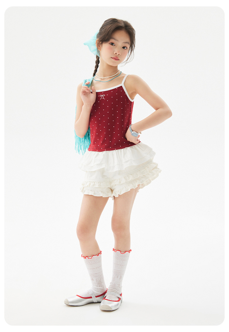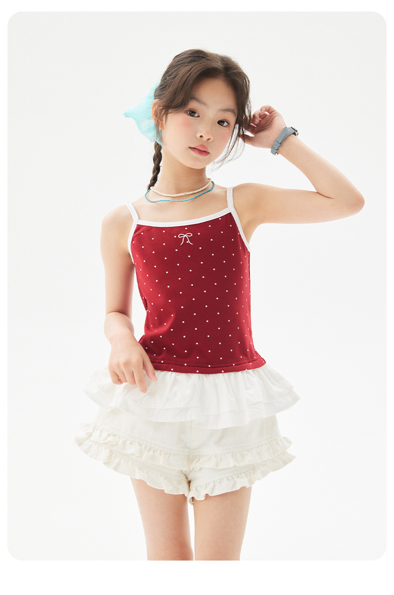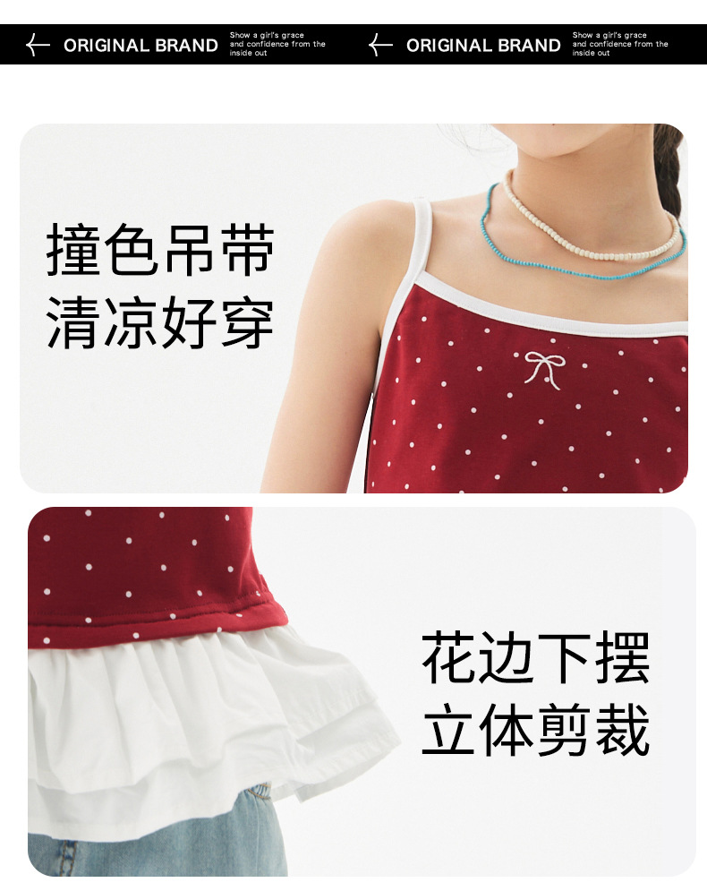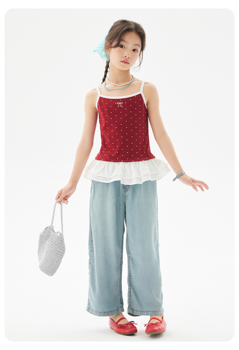 소녀 스티칭 레이스 슬립 셔츠 2025 여름 새로운 어린이 캐주얼 얇은 아동복 조끼 중 큰 어린이 티셔츠