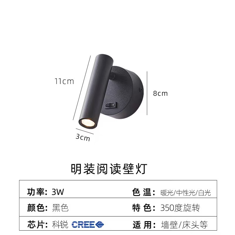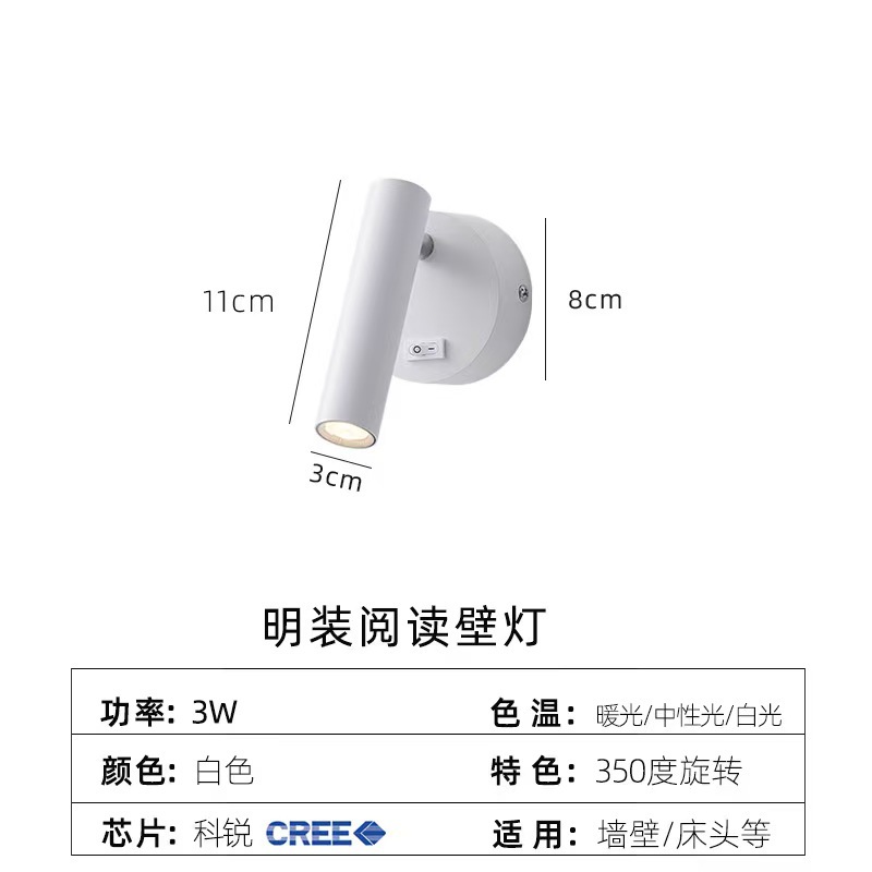 현대 미니멀리스트 호텔 표면 장착 벽 램프 회전 눈 보호 led 독서 벽 램프 스포트라이트 침실 머리맡 독서 벽 램프스토어 가기