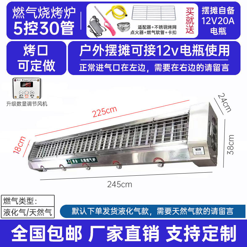• 가스 5개 조절 30개 튜브 245*38*24cm 바베큐 영역 225*18cm