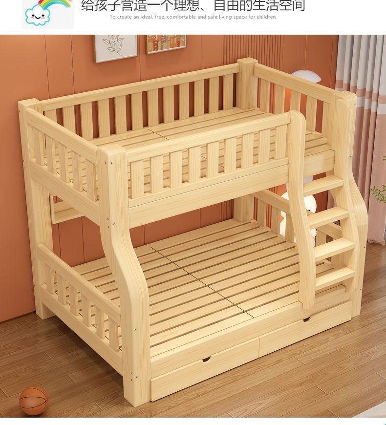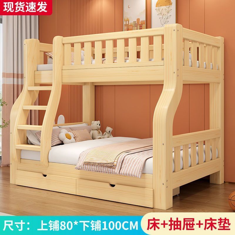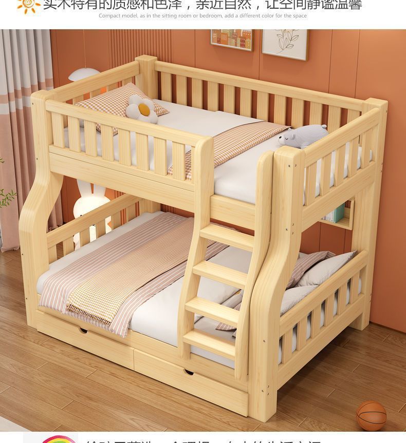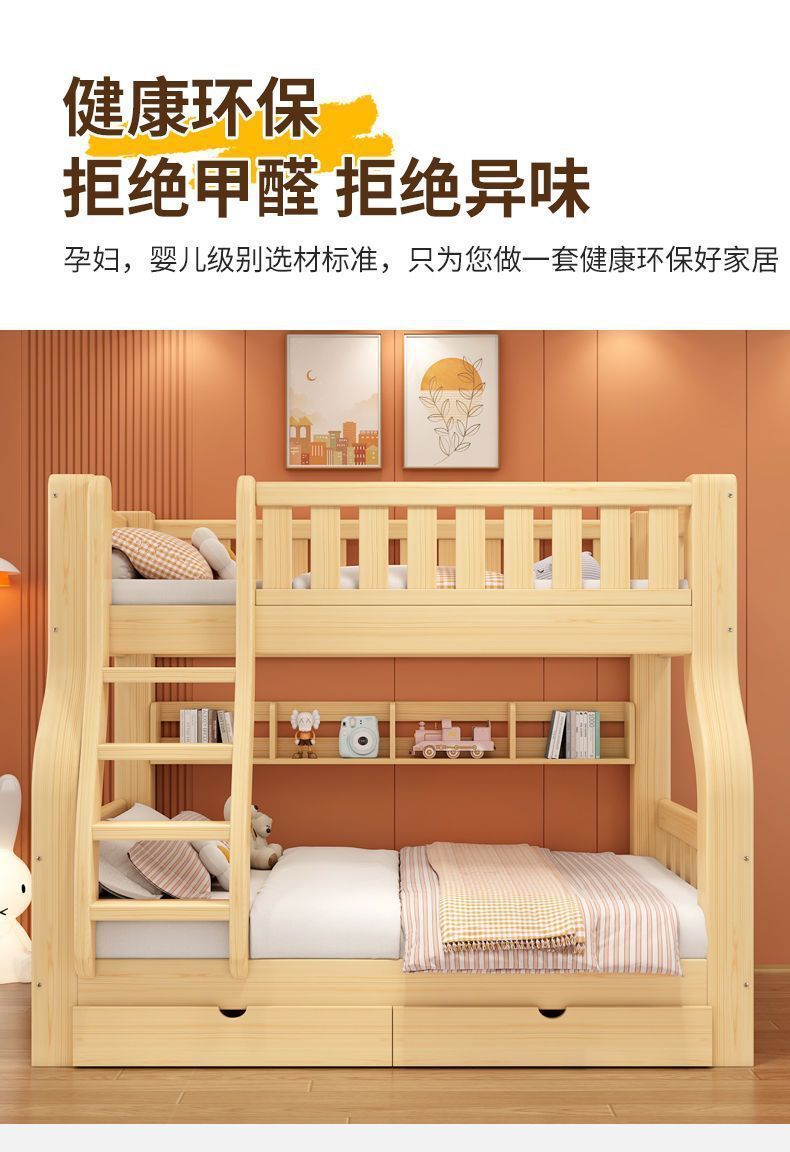 현대적이고 단순한 가정용 원목 이층 침대 이층 침대 높낮이 침대 소형 이층 침대 2층 침대