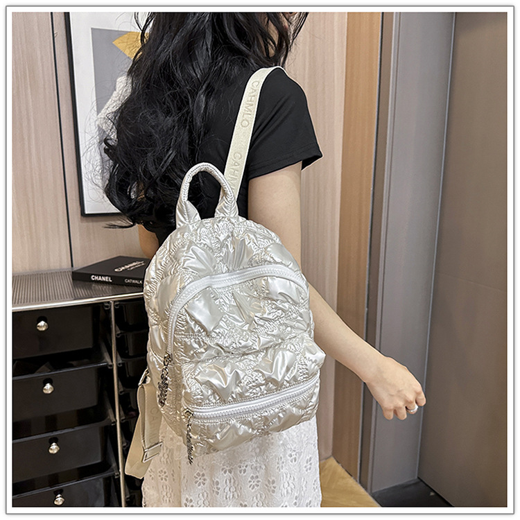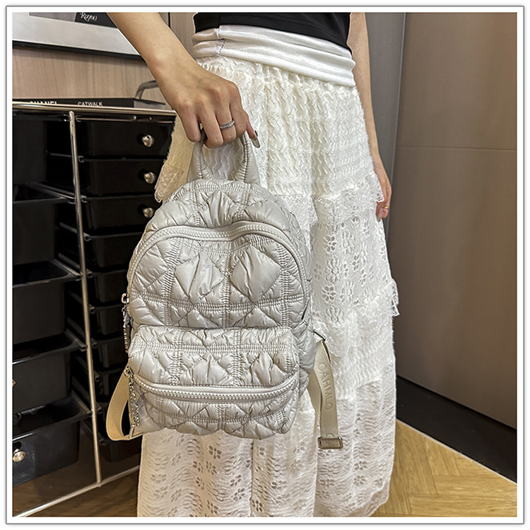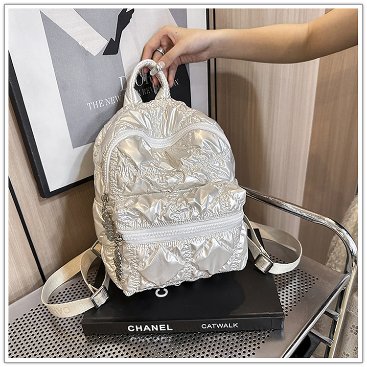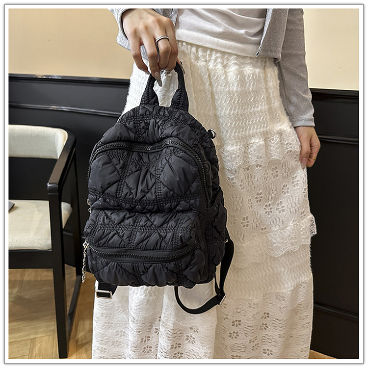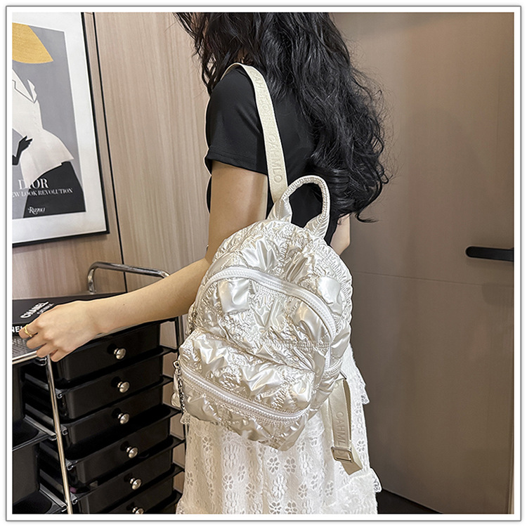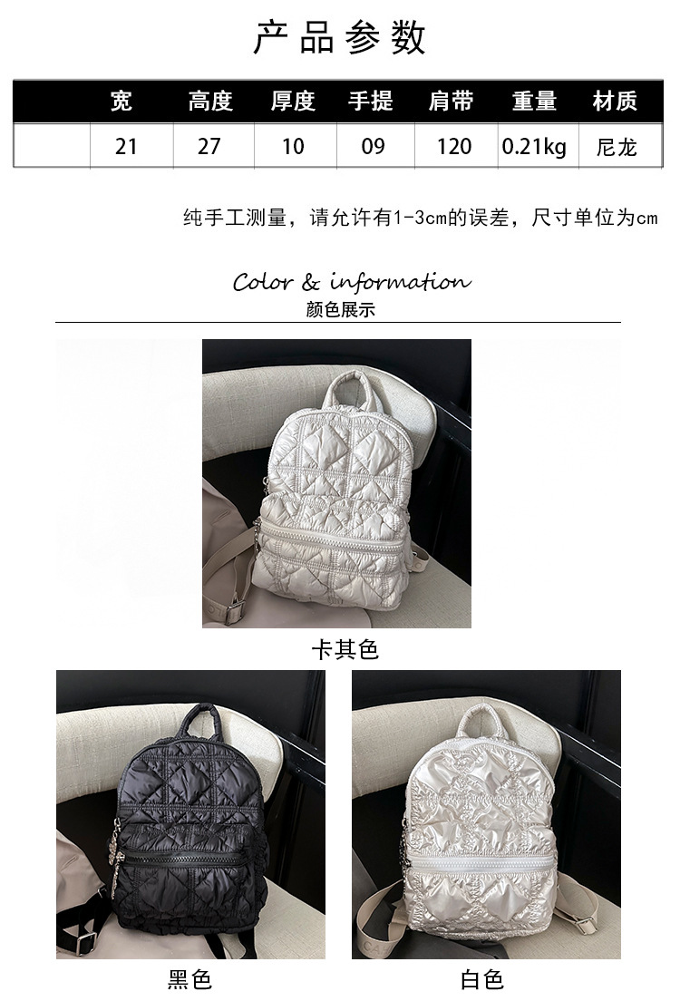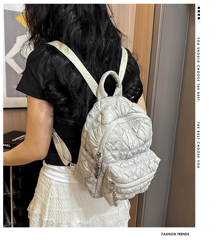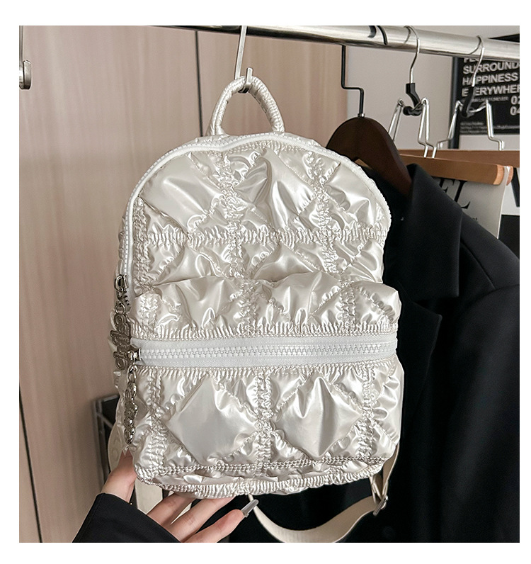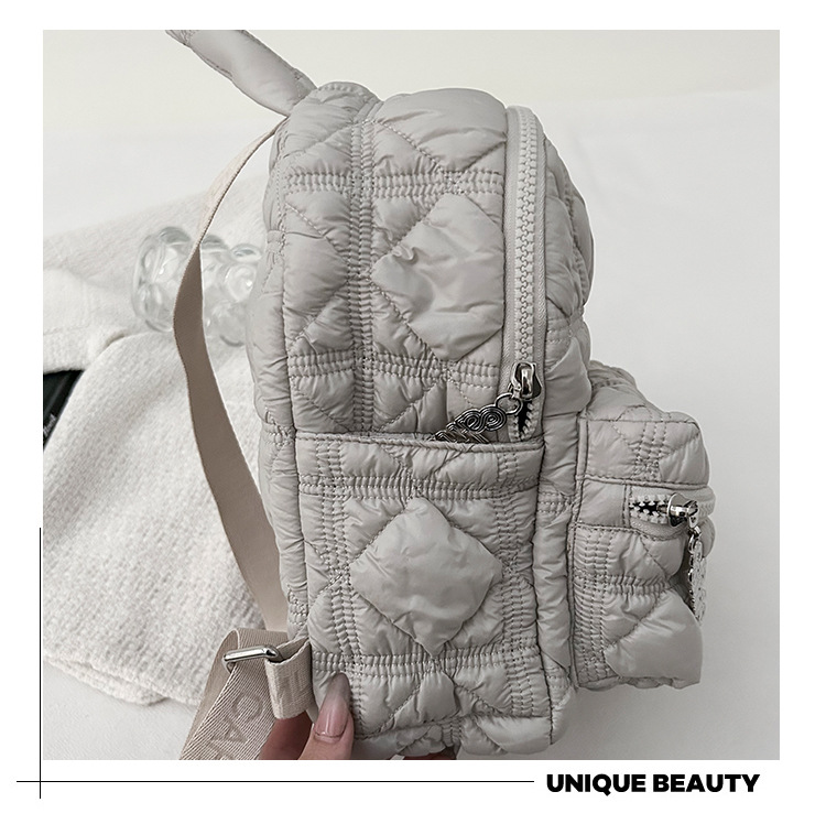 대용량 캐주얼 배낭 마름모꼴 자수 면화 배낭 화이트 밝은 높은 수준의 외출 경량 핸드백 여성스토어 가기