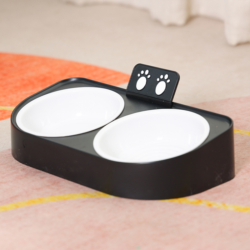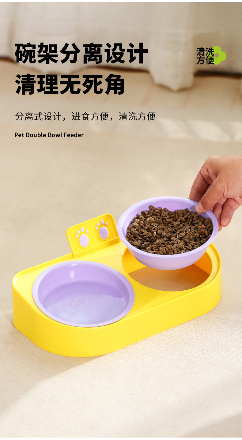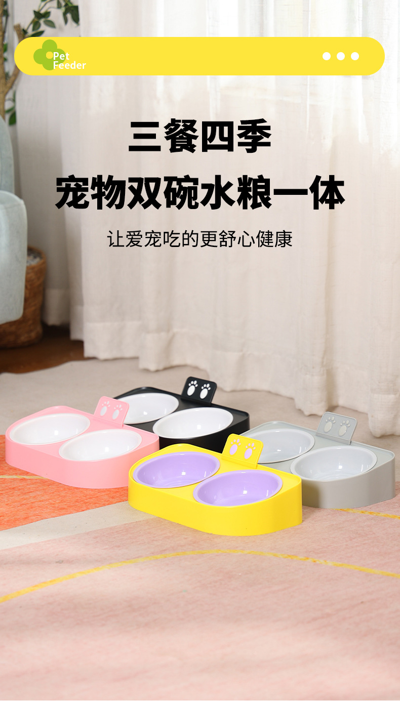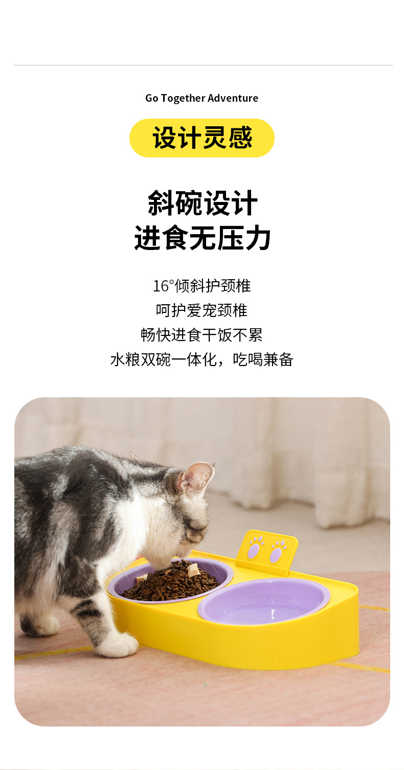 복숭아 방지 고양이 이중 그릇 물과 식품 통합 고양이 사료 그릇 경추 보호 먹이 및 물 개 사료 그릇 애완 동물 용품 그릇
