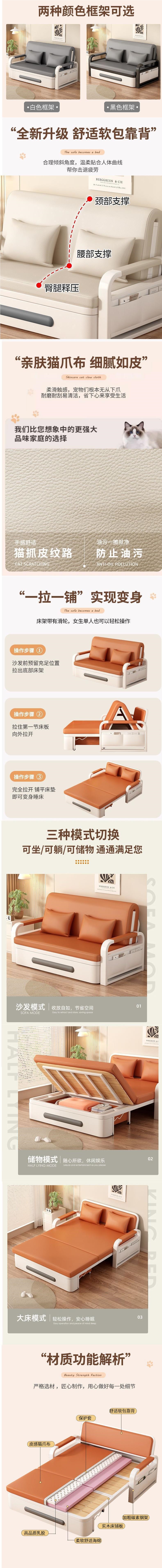 소파 침대 싱글 접이식 이중 목적 새로운 거실 접이식 침대 더블 작은 아파트 발코니 다기능 개폐식 통합스토어 가기