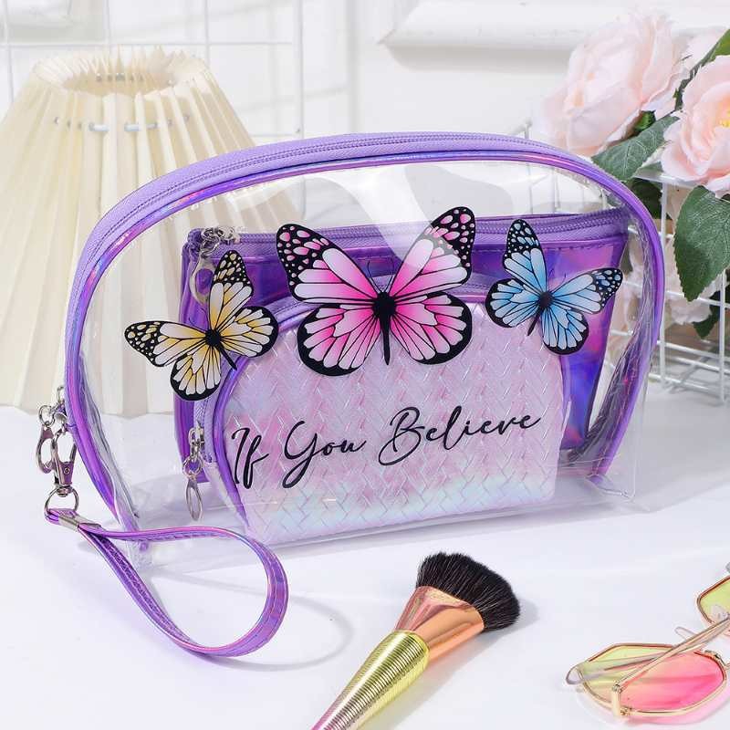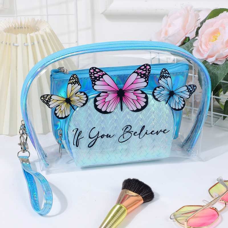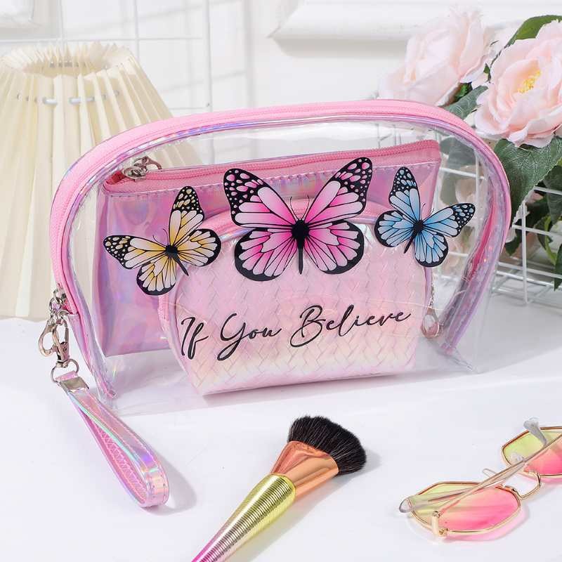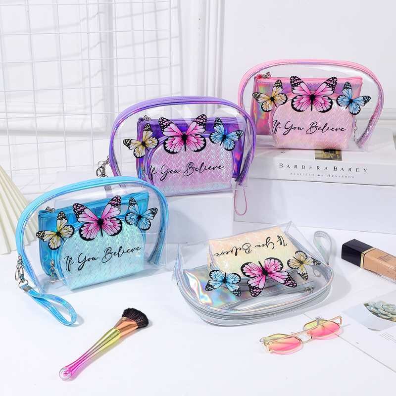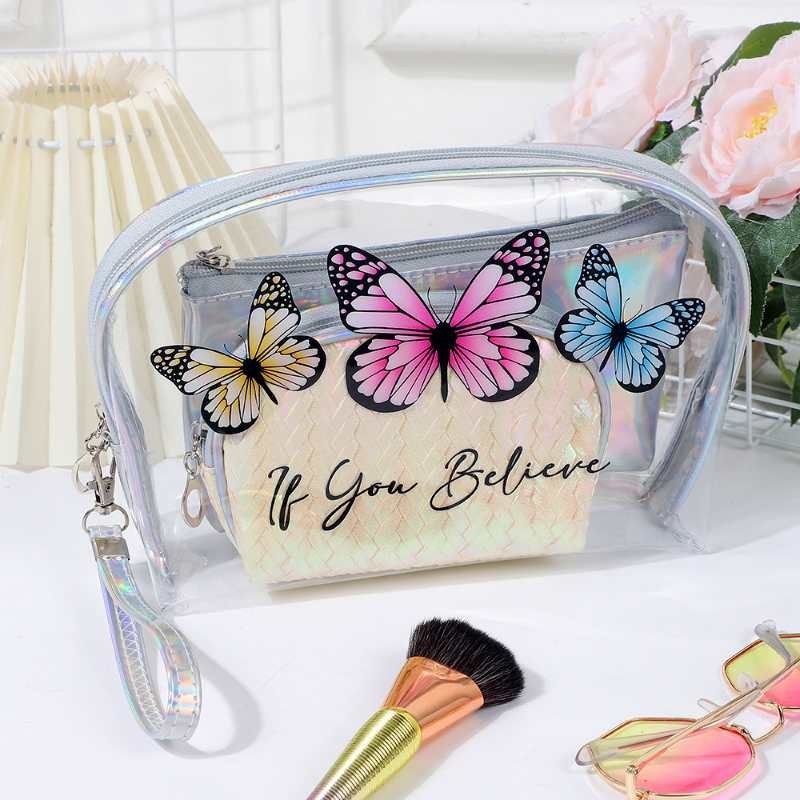 유럽과 미국의 멋진 패션 나비 화장품 보관 가방 휴대용 여행 세면 용품 가방 레이저 PVC 화장품 가방