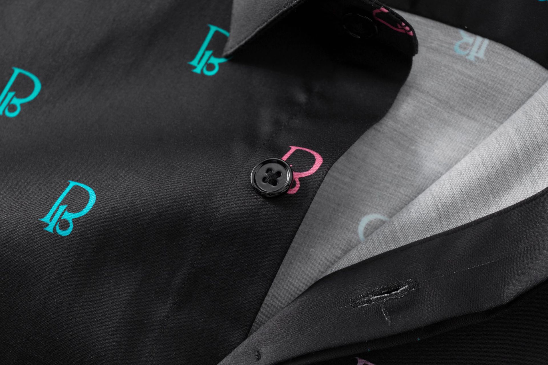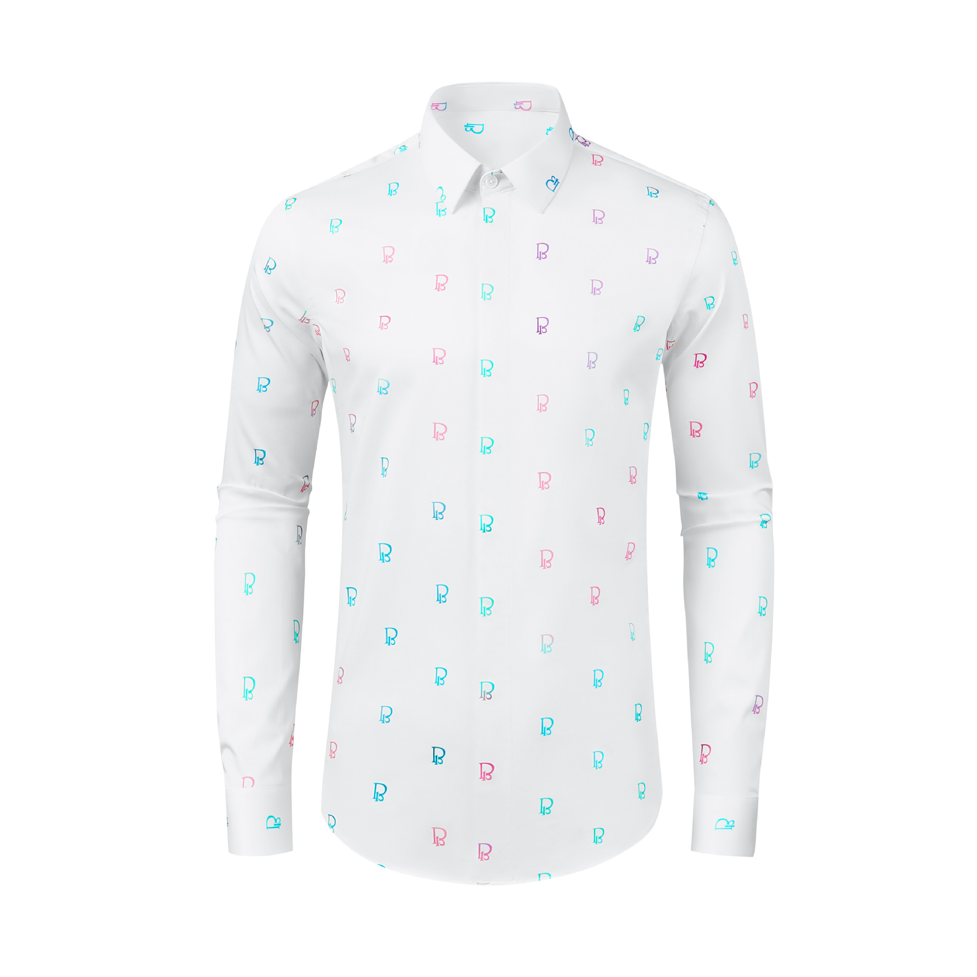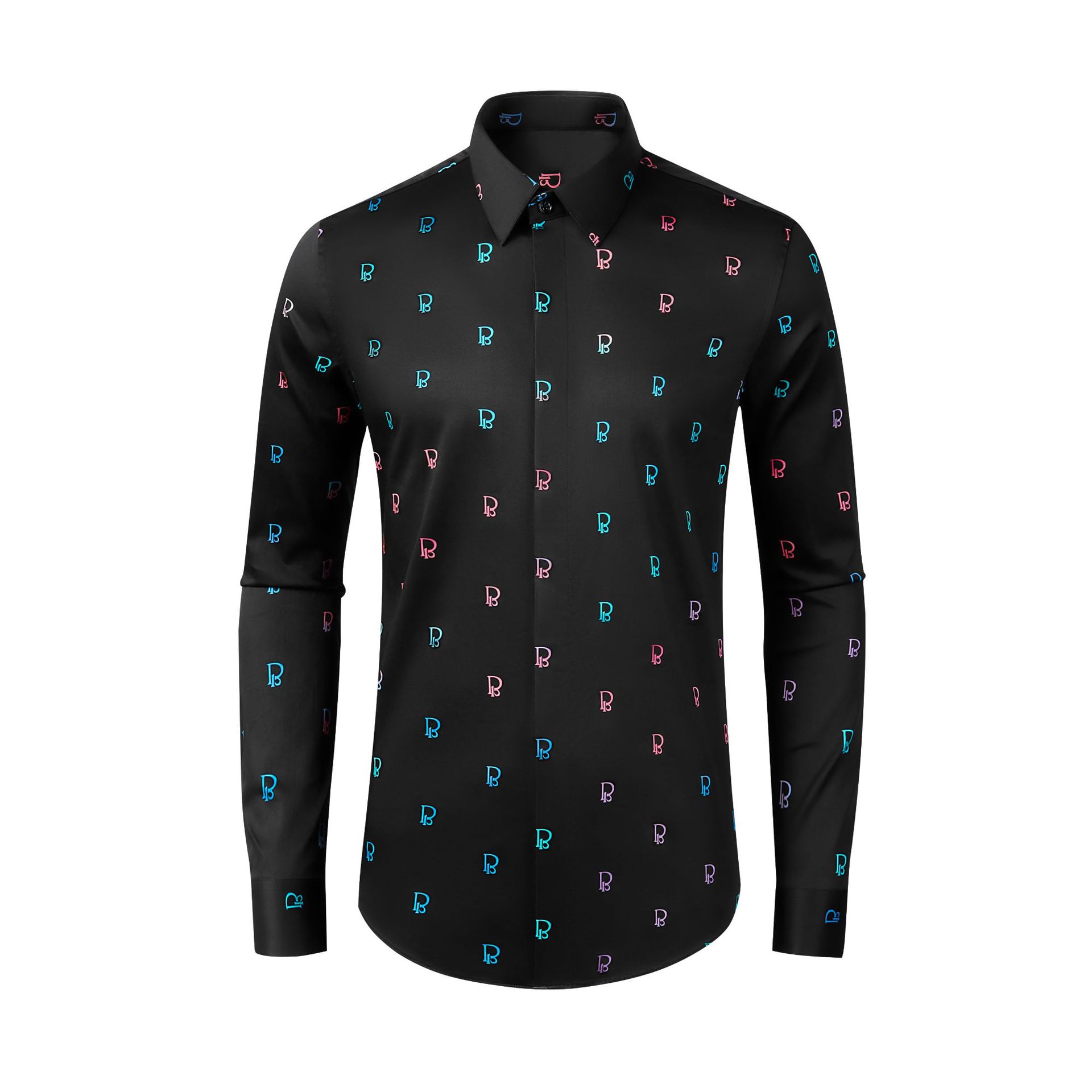 신제품 긴팔 풀 프린트 B자형 남성용 핏 신축성 있는 면 편안한 셔츠, 절묘한 작업용 크로스보더 아마존
