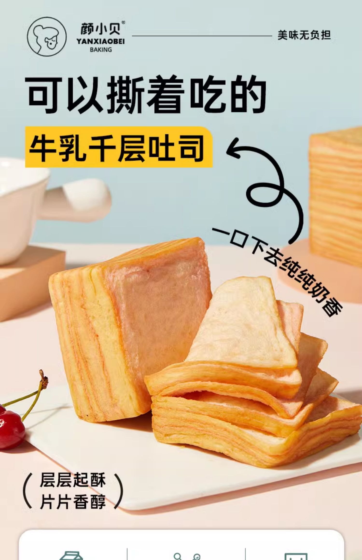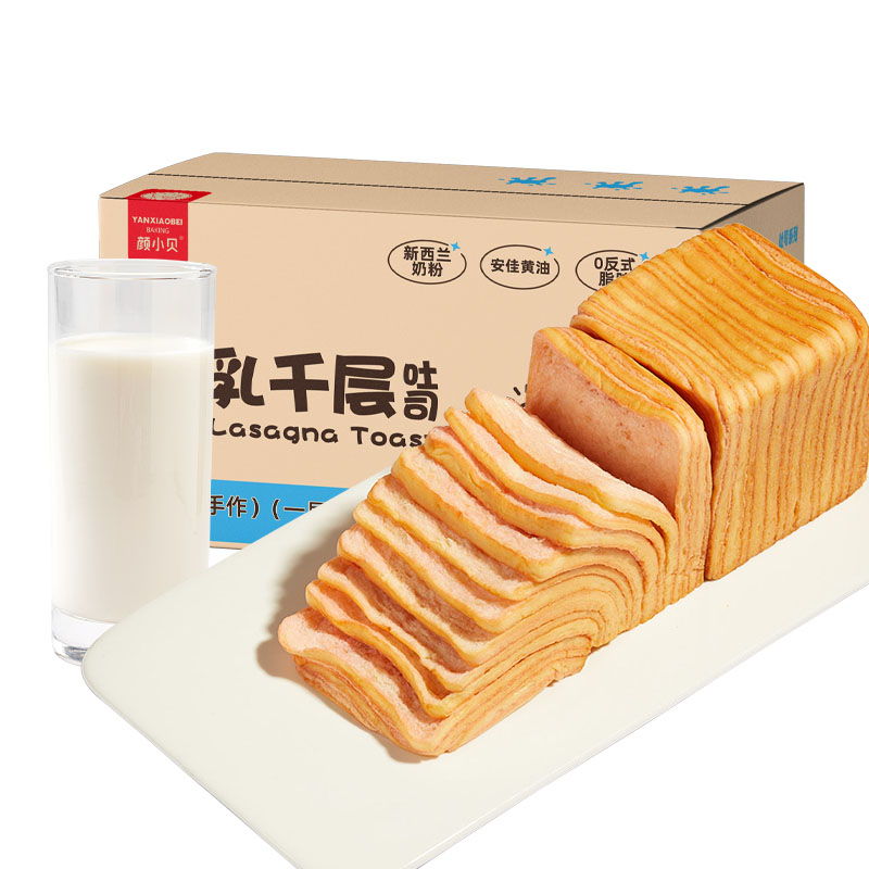 Yan Xiaobei 우유 천 겹 토스트 손으로 찢은 빵 수입 버터 우유 향기로운 슈퍼 소프트 토스트 빵 전체 상자 아침 식사스토어 가기