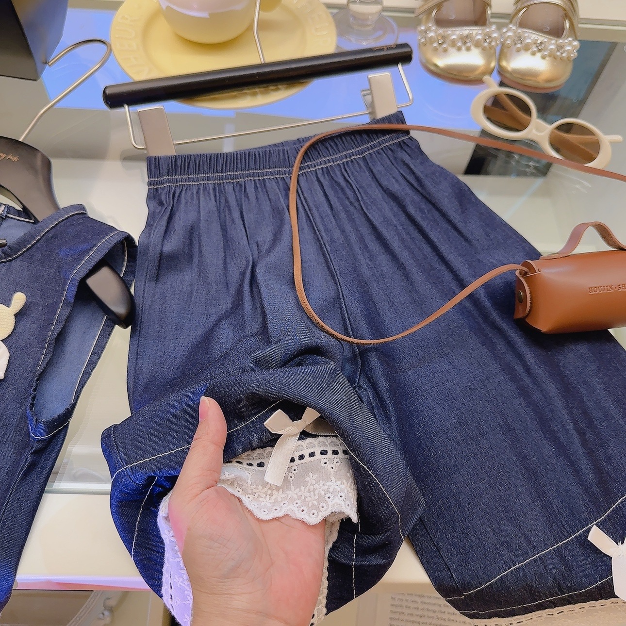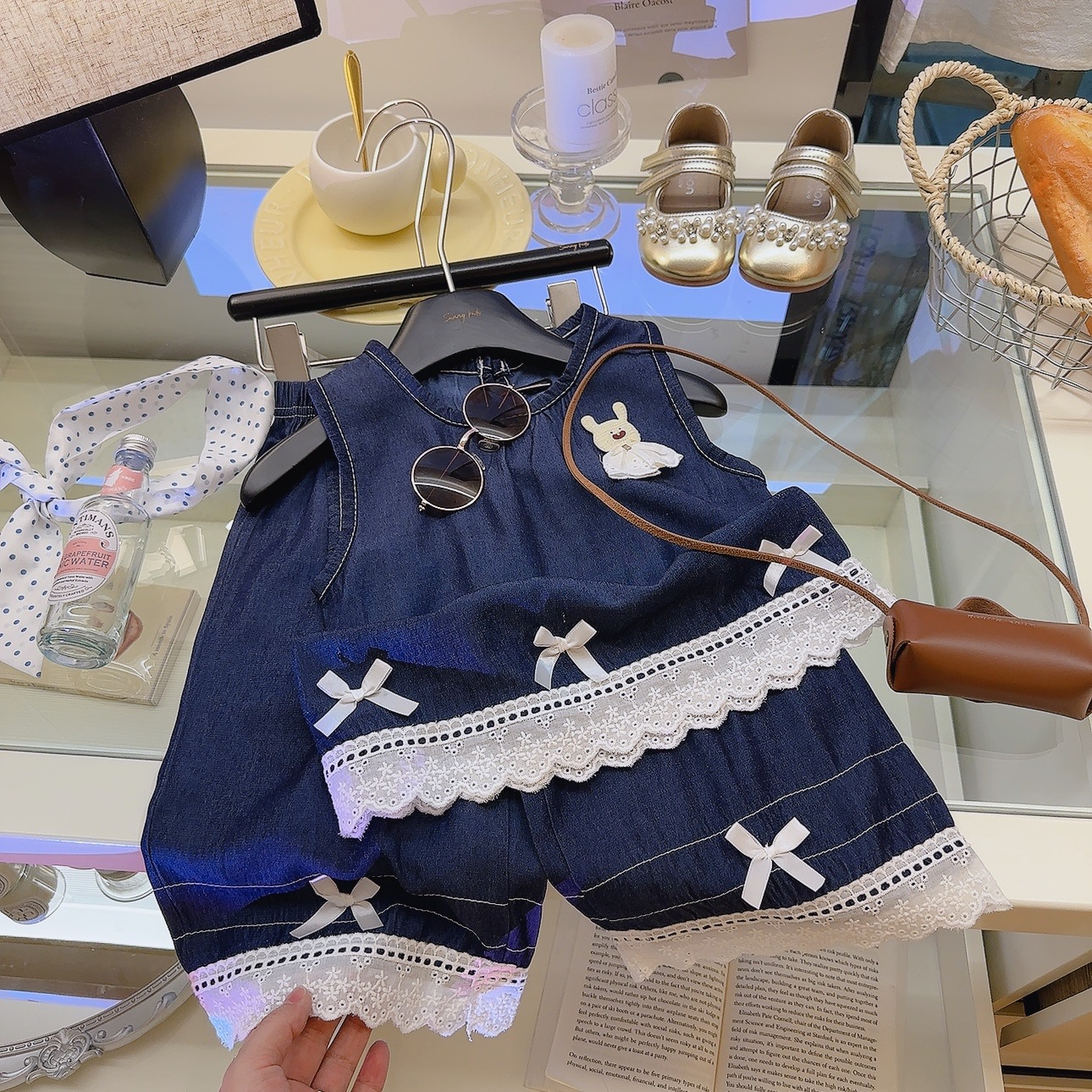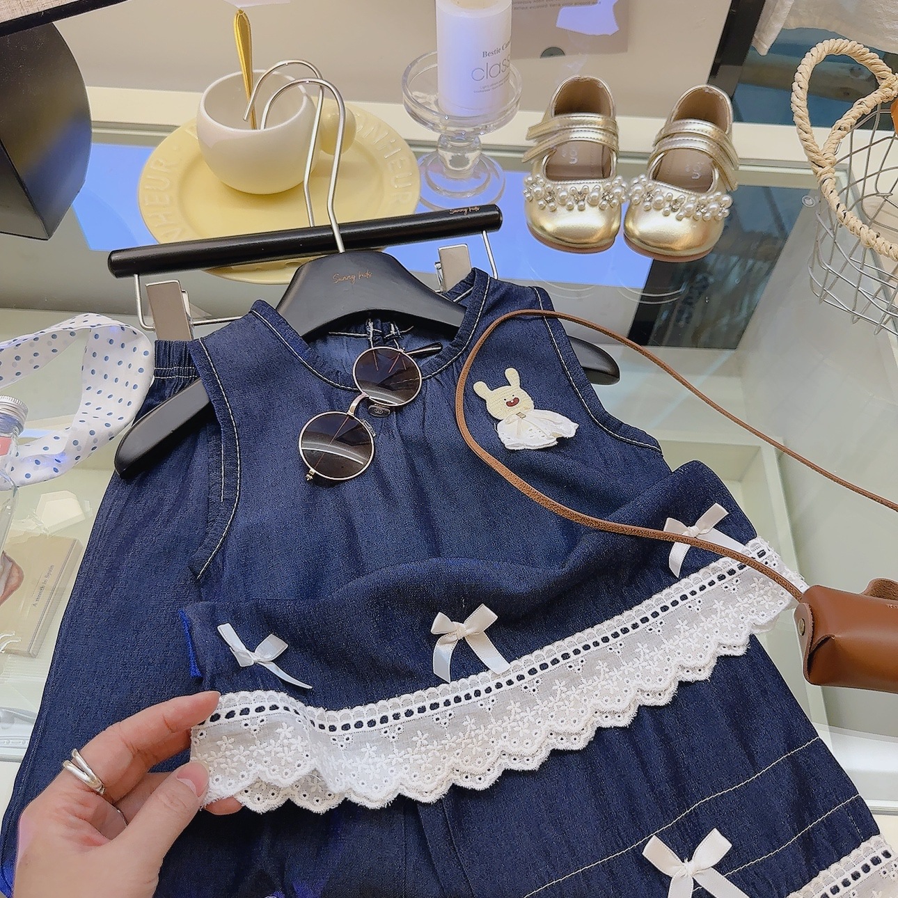소녀 여름 세트 2025 새로운 어린이 온라인 인기 서양식 데님 와이드 레그 바지 투피스 세트 여자 조끼 세트스토어 가기