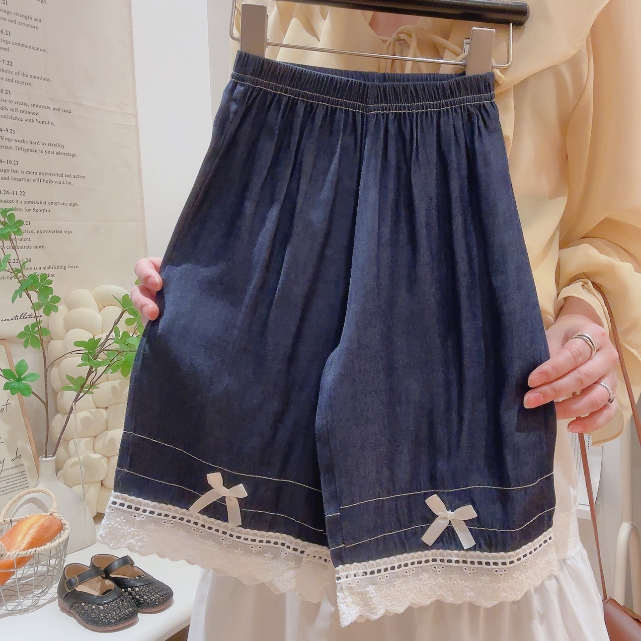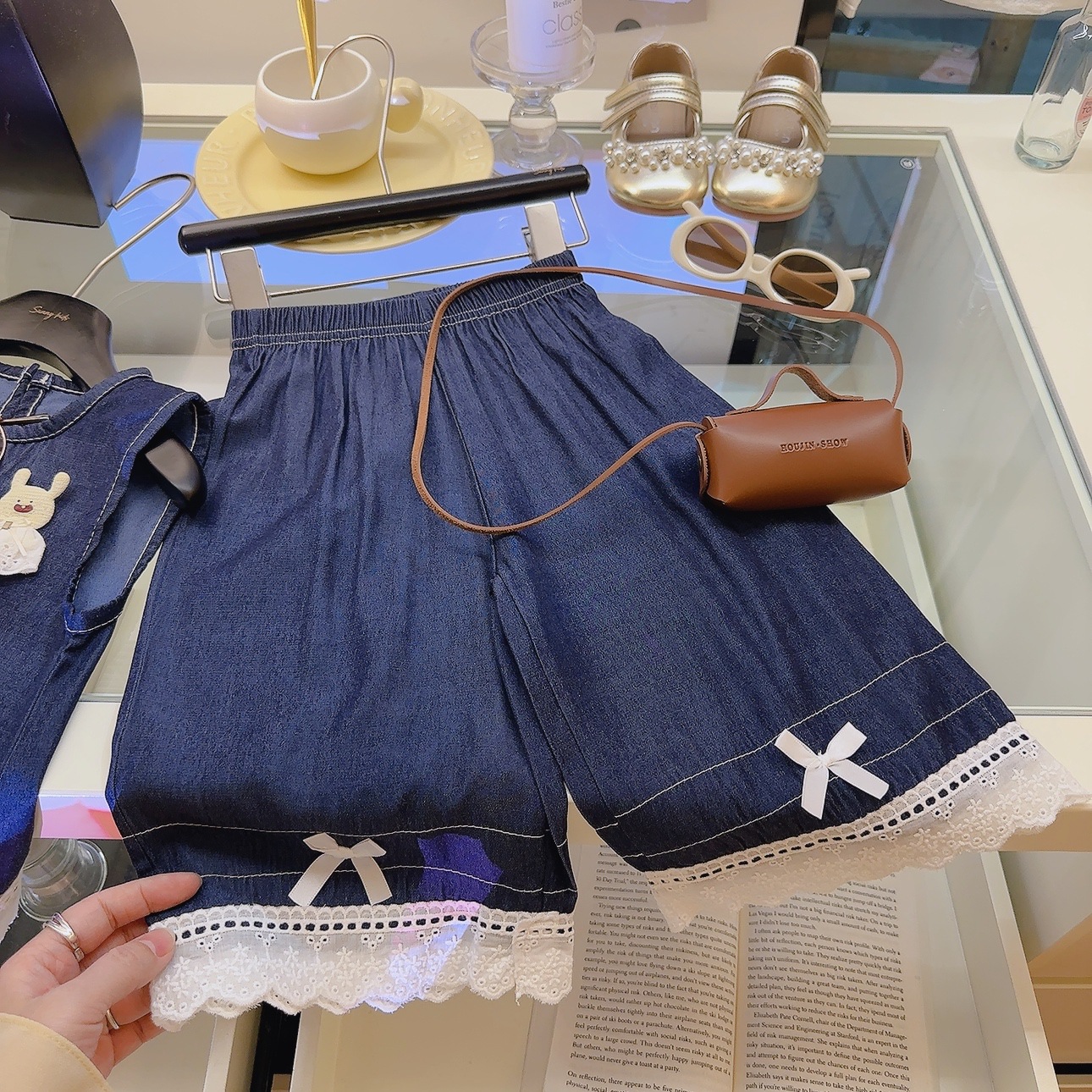 소녀 여름 세트 2025 새로운 어린이 온라인 인기 서양식 데님 와이드 레그 바지 투피스 세트 여자 조끼 세트