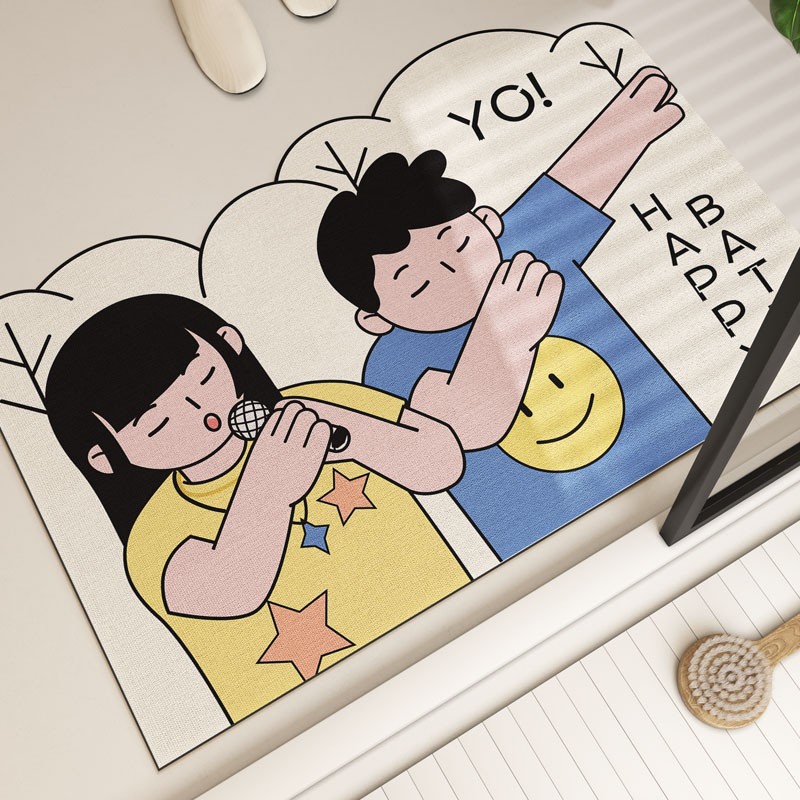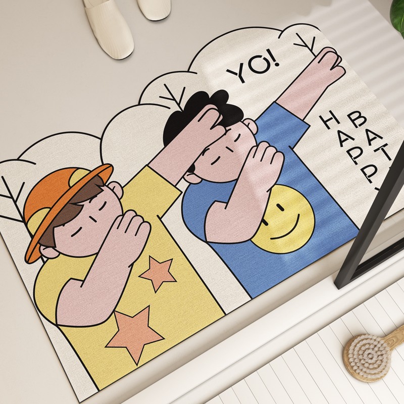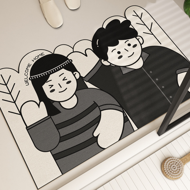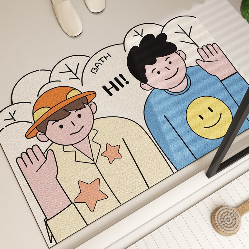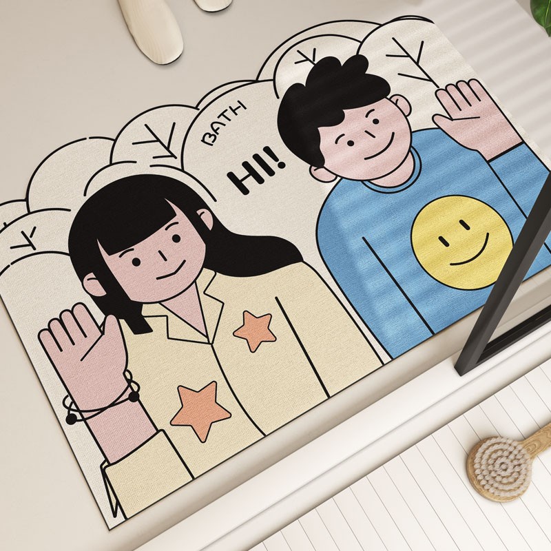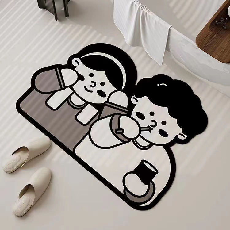 만화 스타일 커플 욕실 워시 매트 홈 욕실 싱크대 흡수성 발 매트 새로운 규조토 진흙 매트