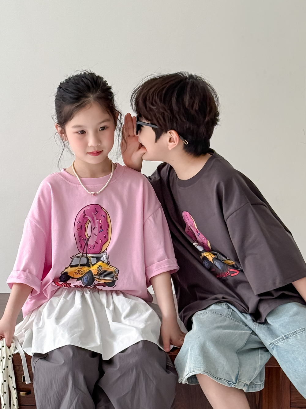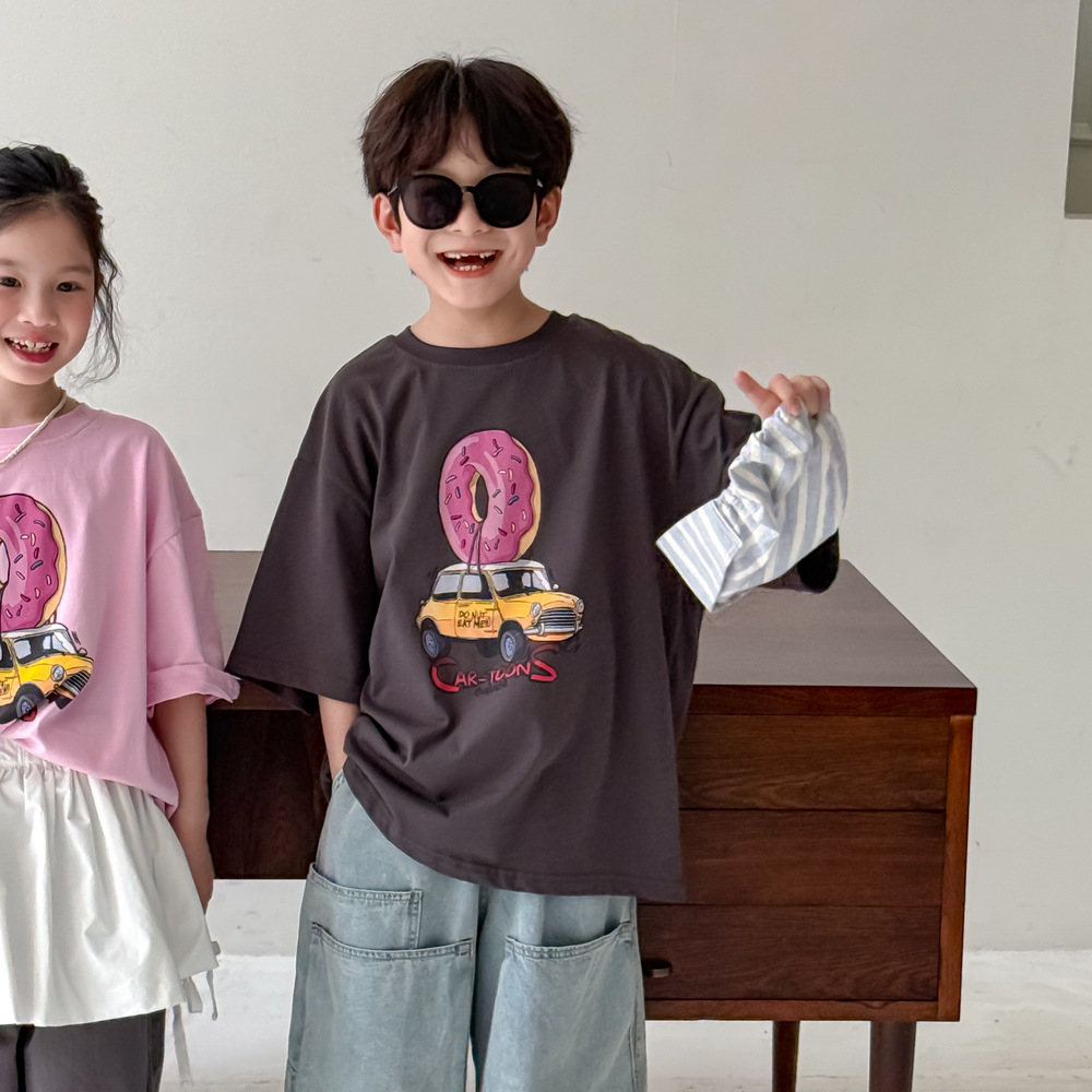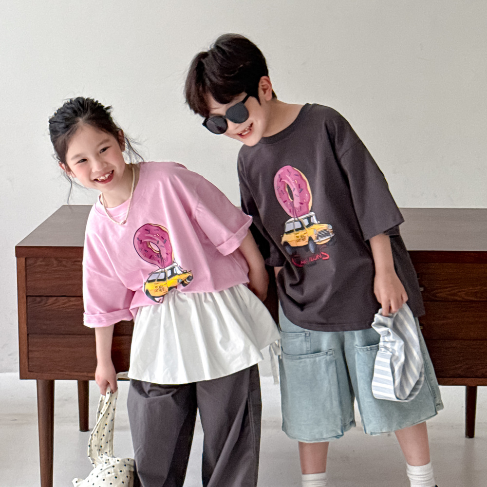 아동용 티셔츠 2026 여름 한국판 만화 자동차 프린트 반팔 아동용 라운드넥 캐주얼 루즈핏 상의스토어 가기