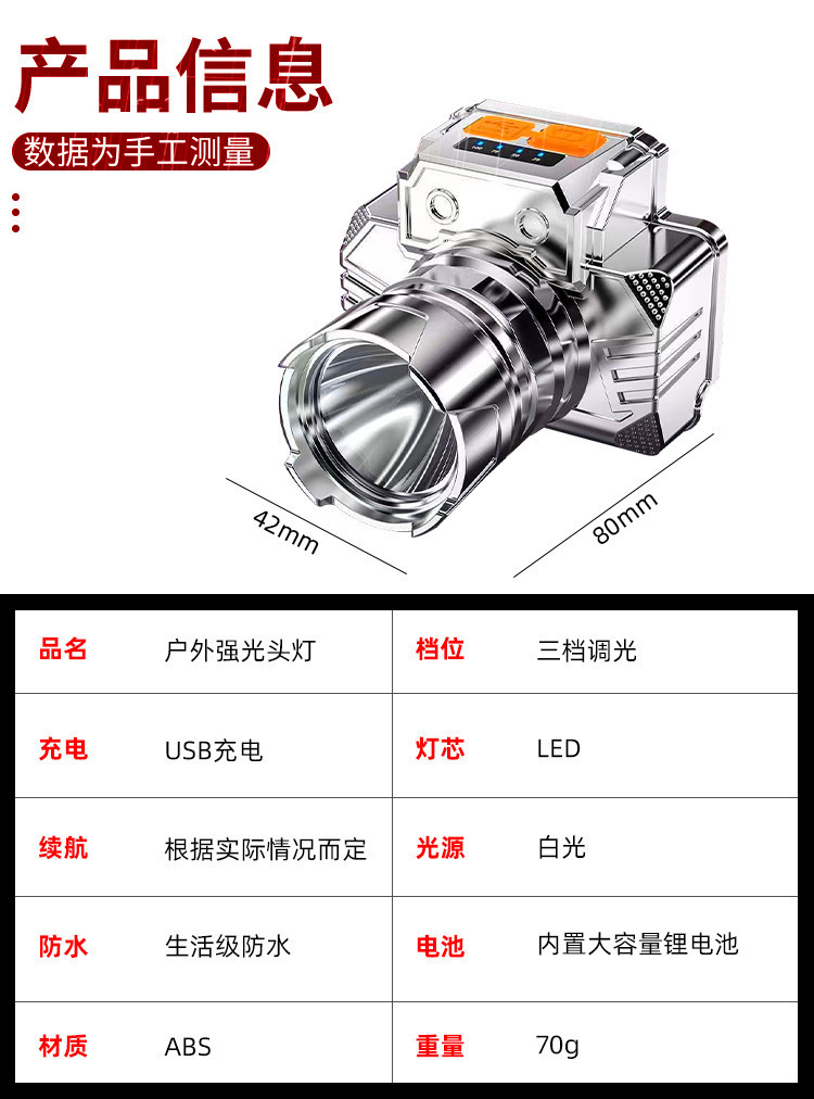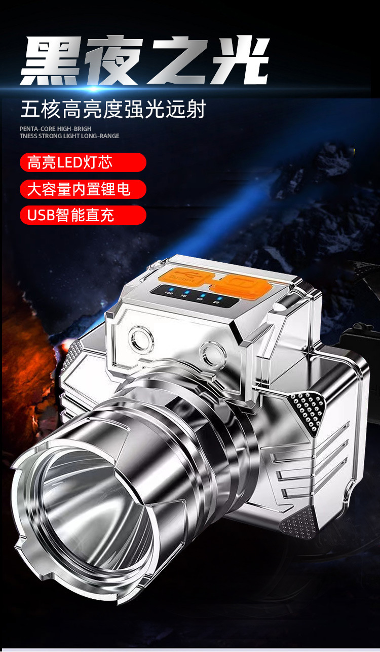 LED 강한 빛 헤드 라이트 야간 낚시 헤드 라이트 슈퍼 밝은 장거리 USB 충전식 야외 헤드 장착형 서치 캠핑 광부의 램프