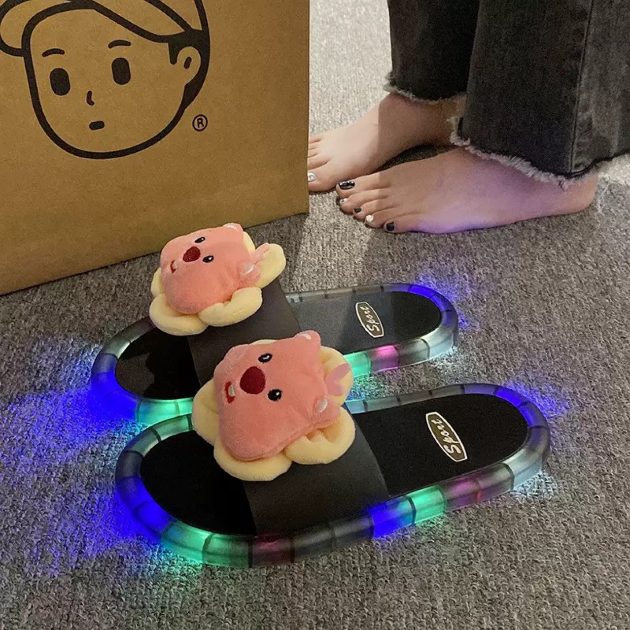 여성용 여름 아우터 샌들, 인터넷 연예인 귀여운 만화 루비 루피 리틀 비버 부모-자식 아동용 아기 신발스토어 가기