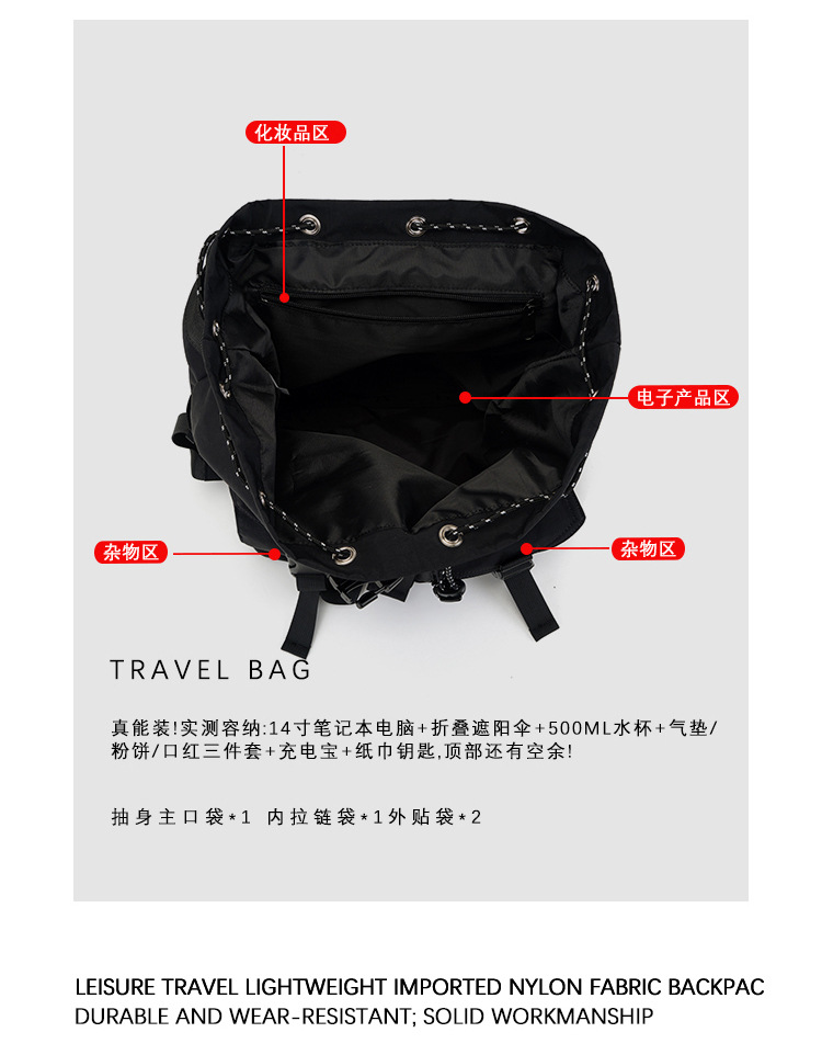 Liu Yifei의 한국식 틈새 나일론 배낭 대용량 경량 디자인 여행용 소형 배낭