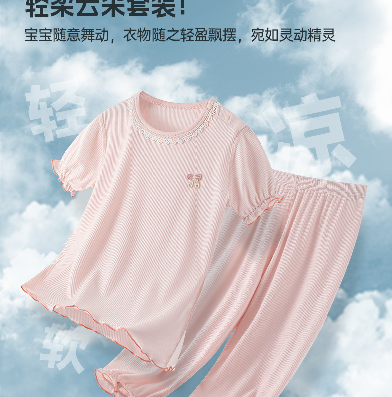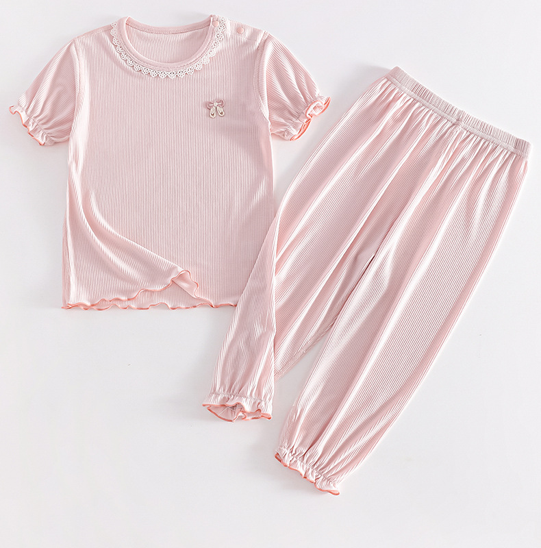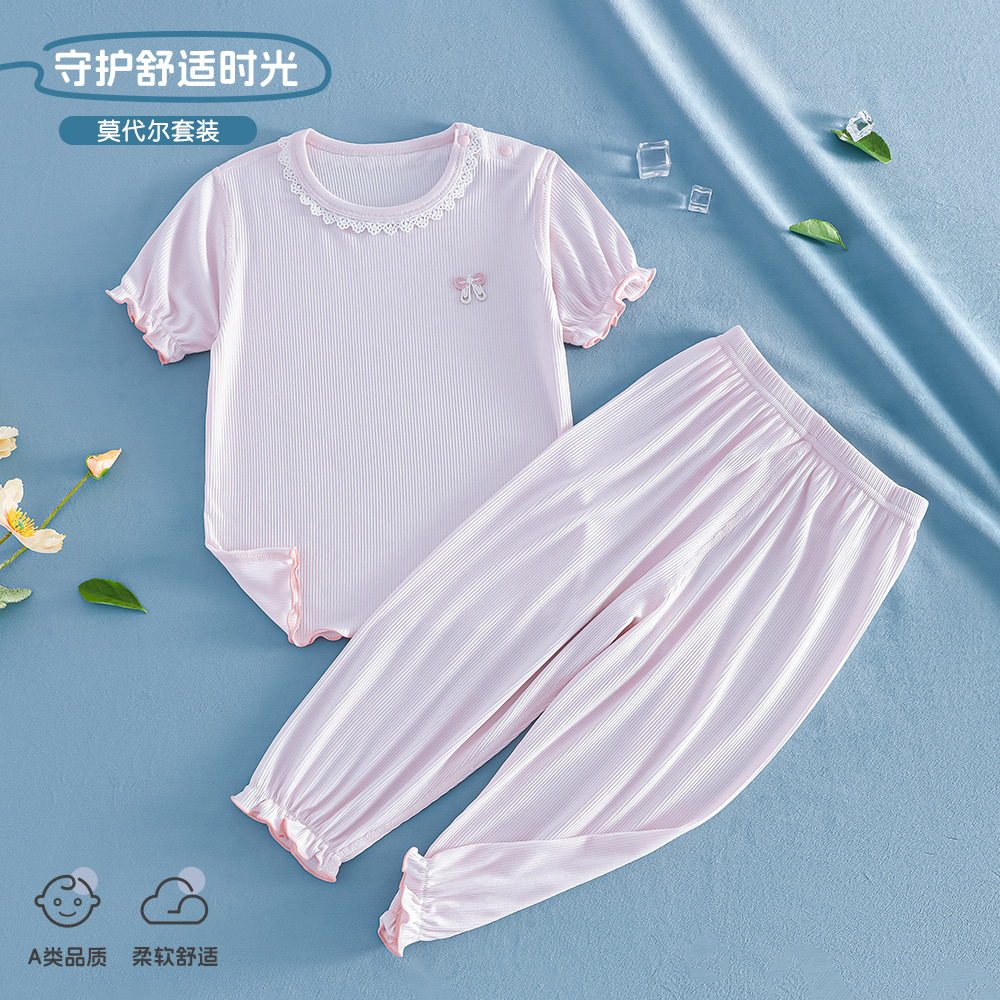 어린이 클래스 A 모달 여름 에어컨 의류 공주 스타일 파자마 소녀 얇은 통기성 홈 옷 2 피스 여름 옷스토어 가기