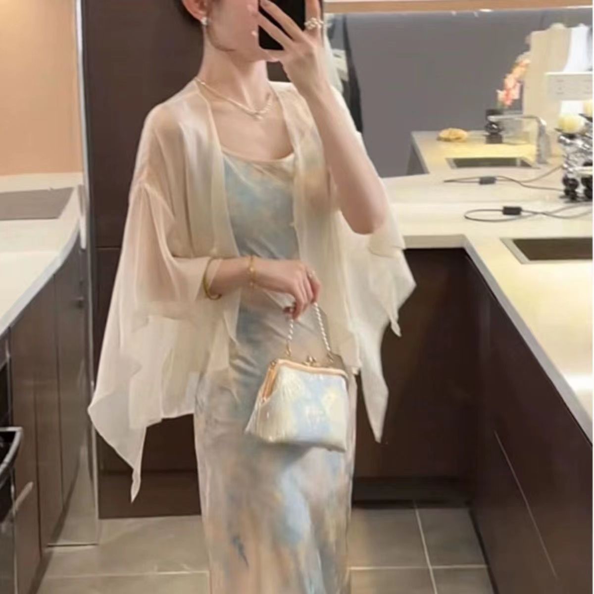 슈퍼 페어리 쉬폰 선 스크린 의류 여성용 여름 쿨 툴레 카디건 슬링 스커트 아우터 숄 블라우스와 함께 작은 웨이슬스토어 가기