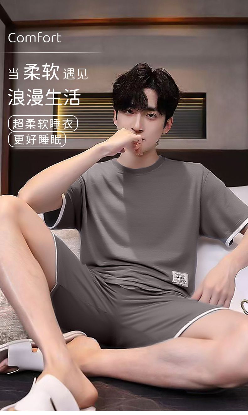 2025 새로운 여름 모달 남성 반팔 반바지 풀오버 잠옷 스포츠 및 레저 남성 홈웨어 투피스 세트스토어 가기